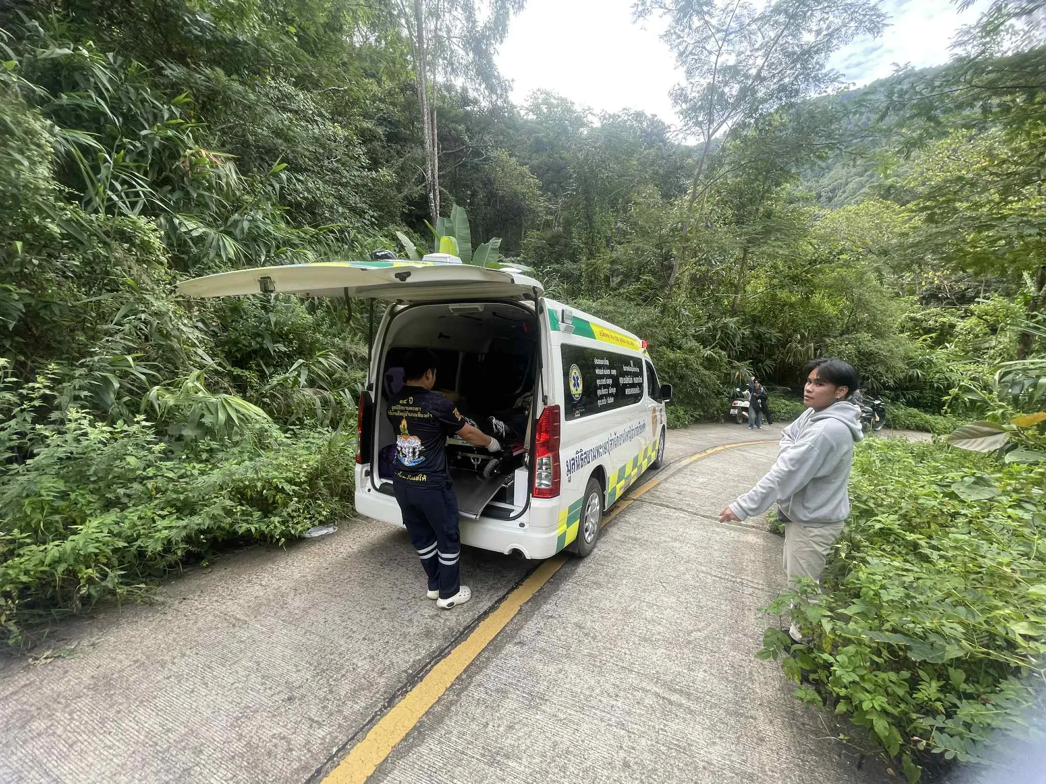 วันที่ 17 พ.ย. 68 ผู้สื่อข่าวรายงานว่า เมื่อช่วงเวลาประมาณ 09.30 น.ทางเจ้าหน้าที่กู้ภัยสยามรวมใจพะเยาสำนักงานใหญ่ อ.เชียงคำ ได้รับแจ้งจากทางวิทยุว่ามีกลุ่มวัยรุ่นได้รับบาดเจ็บ 2 รายหลังไปเที่ยวชมธรรมชาติ “ภูอานม้า” ซึ่งตั้งอยู่ในพื้นที่ ต.ร่มเย็น อ.เชียงคำ จ.พะเยา ทั้งนี้จึงได้ประสานไปยังกู้ภัย รพ.เชียงคำอีก 1 คันเพื่อเข้าช่วยพร้อมทั้งได้ประสานงานไปยังนายสุรชัย สิงห์เหาะ หน.อช.ถ้ำสะเกิน เพื่อขอกำลังเจ้าหน้าที่เข้ามาช่วยเหลือผู้ประสบเหตุครั้งนี้อีกแรง