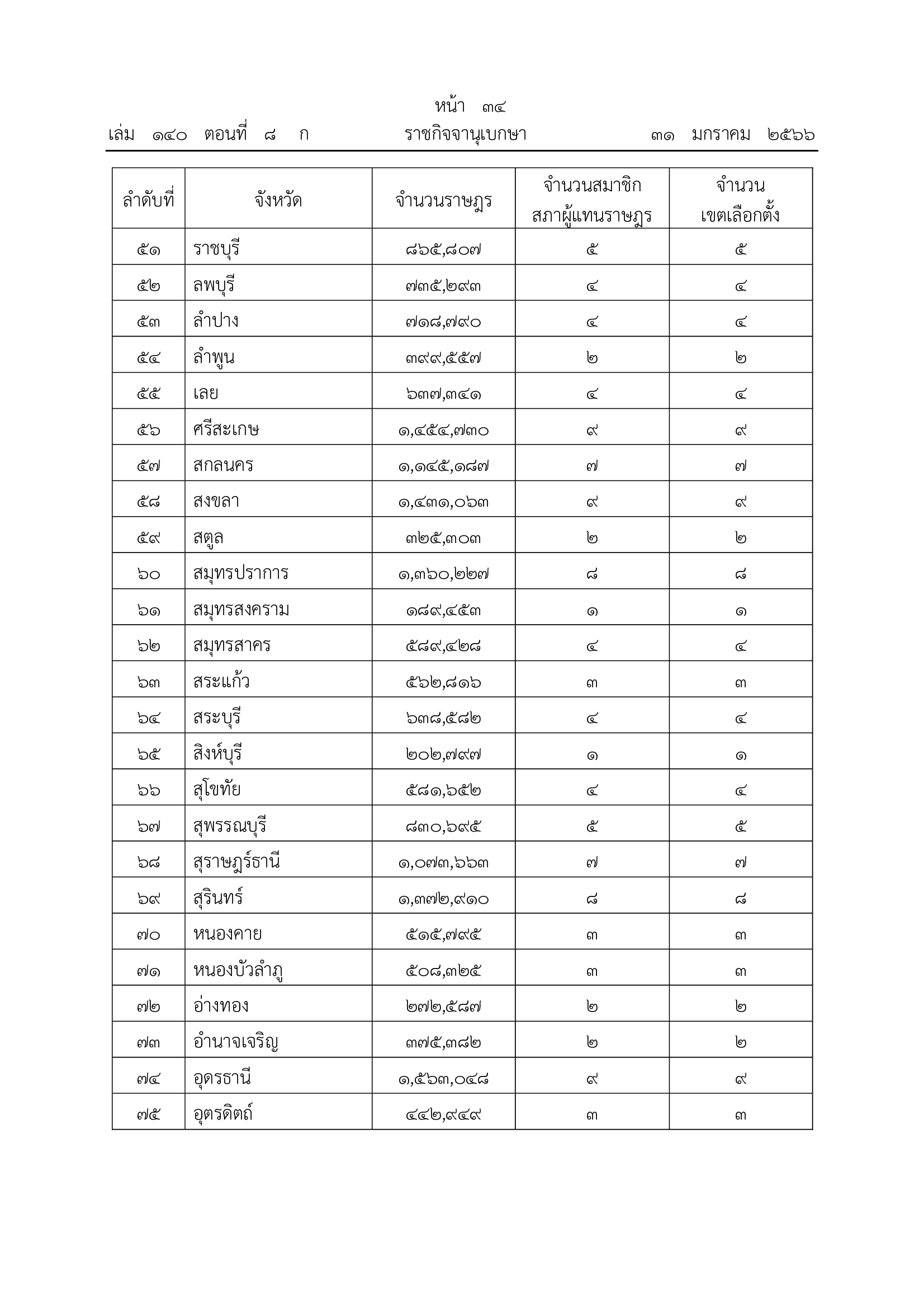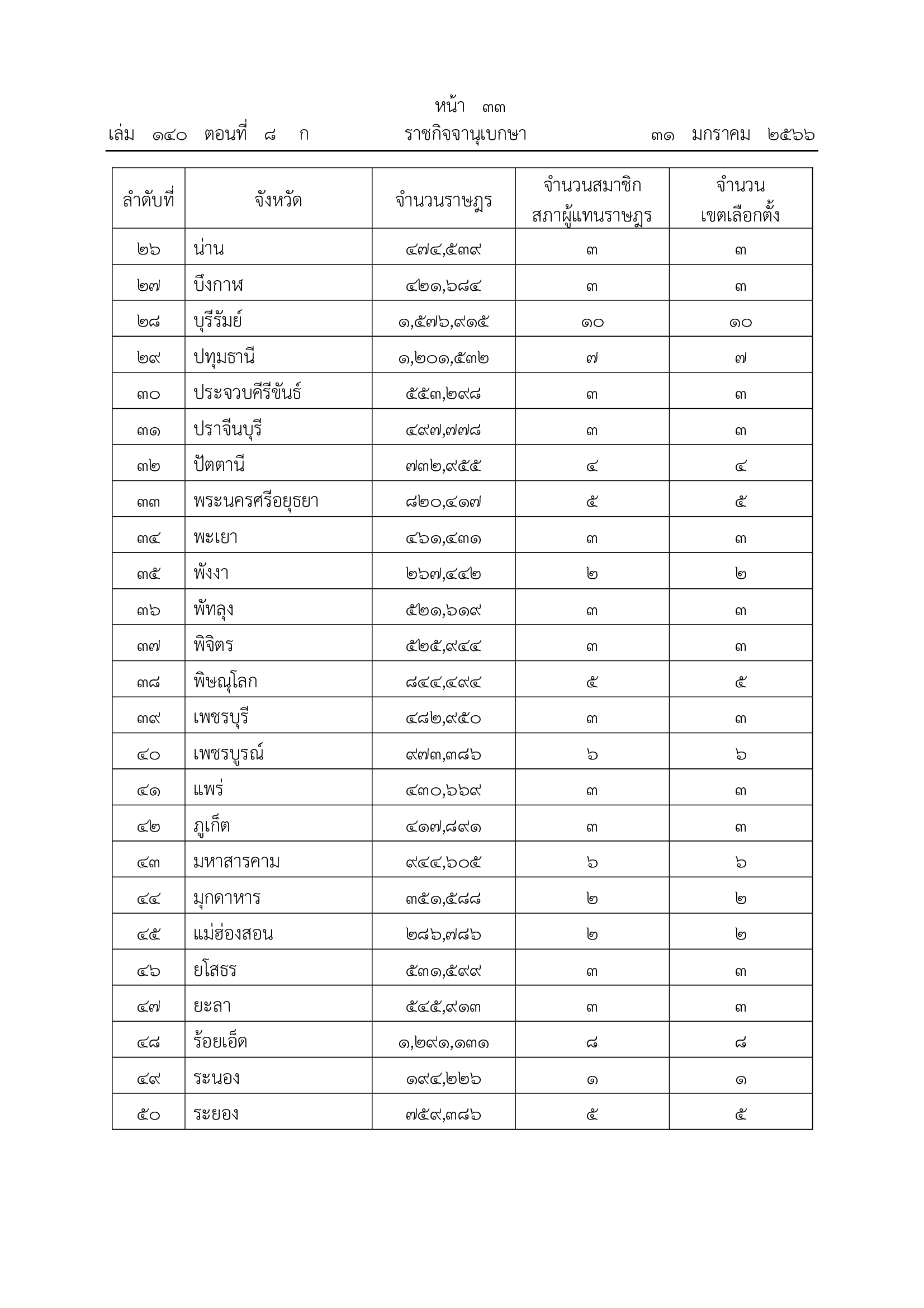 2. จำนวนราษฎรโดยเฉลี่ย 165,226 คน ต่อสมาชิกสภาผู้แทนราษฎร 1 คน