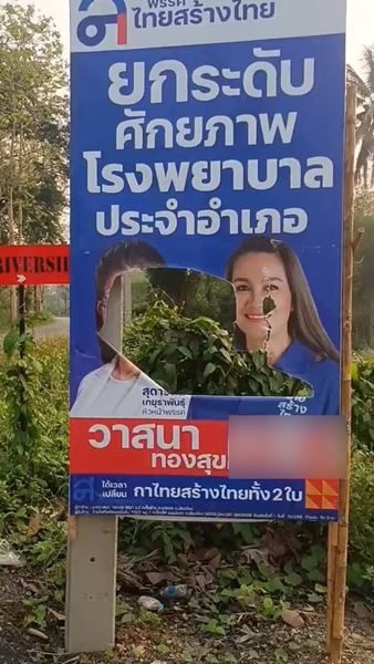 มือมืดทำลายป้ายรูปคุณหญิงสุดารัตน์และผู้สมัคร ส.ส.พรรคไทยสร้างไทยเขต5เชียงใหม่