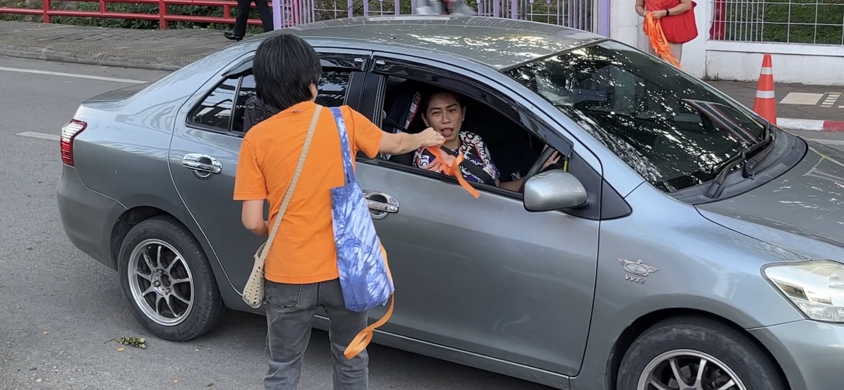 ด้อมส้มกระจายสามจุดกลางเมืองเชียงใหม่ แจกริบบิ้นสีส้มแสดงจุดยืนเลือกพิธาเป็นนายกฯ