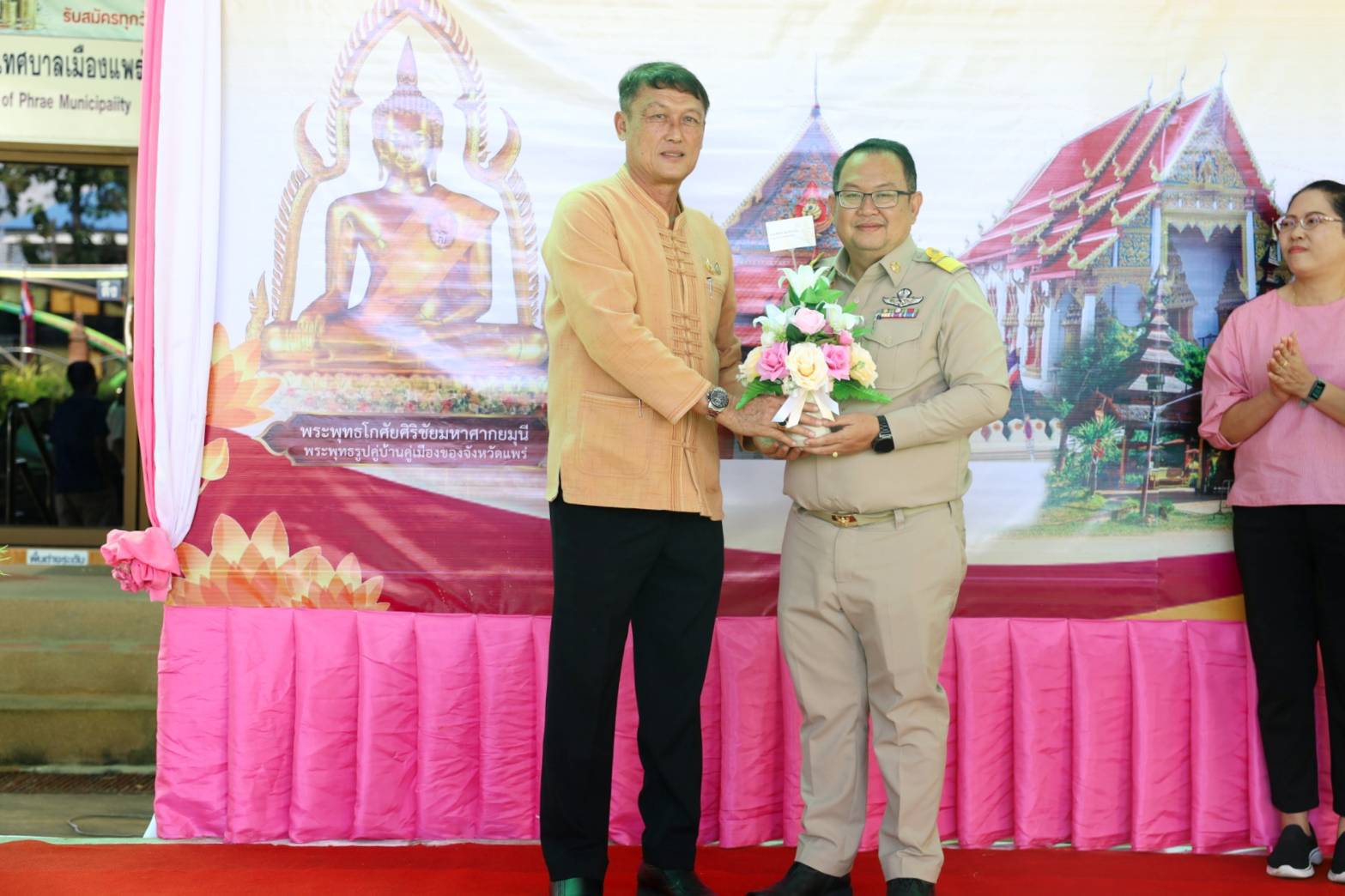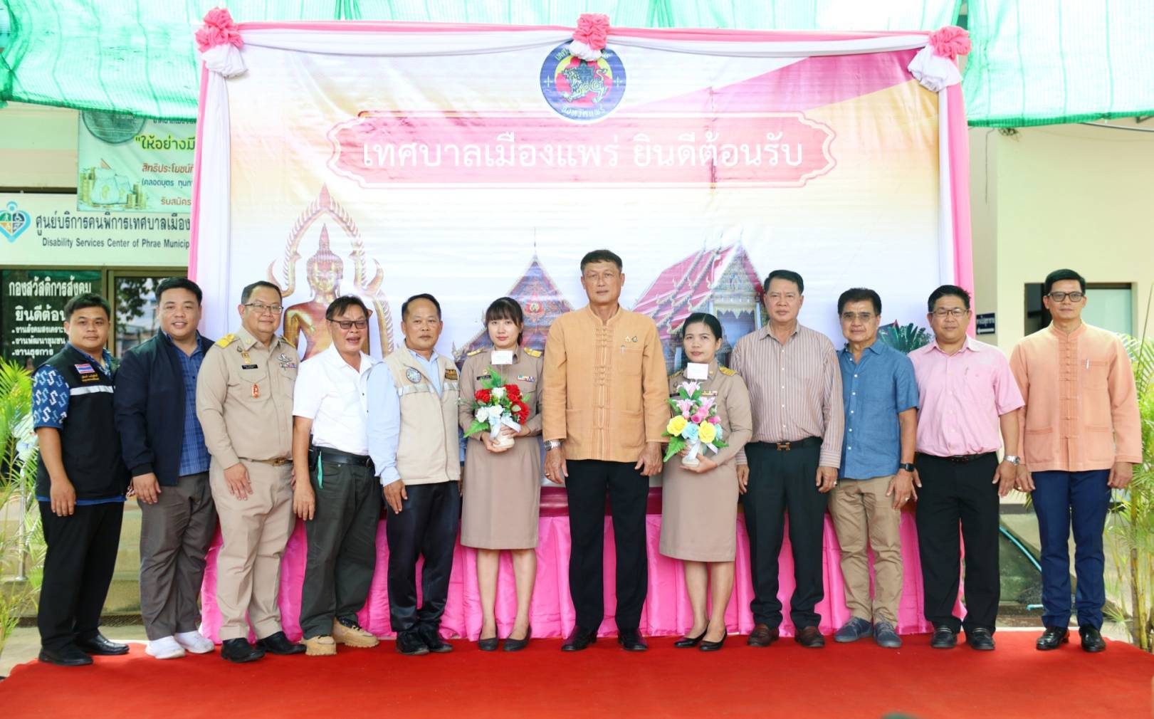 โดยมีนายเจตนิพิฐ หล้าประเสริฐ ปลัดเทศบาลเมืองแพร่ นางสาวสุพัตรา มาดหมาย รองปลัดเทศบาลเมืองแพร่ พร้อมด้วยหัวหน้าส่วนราชการ และพนักงานเทศบาล ร่วมให้การต้อนรับอย่างอบอุ่น ณ ลานอเนกประสงค์ กองสวัสดิการสังคม