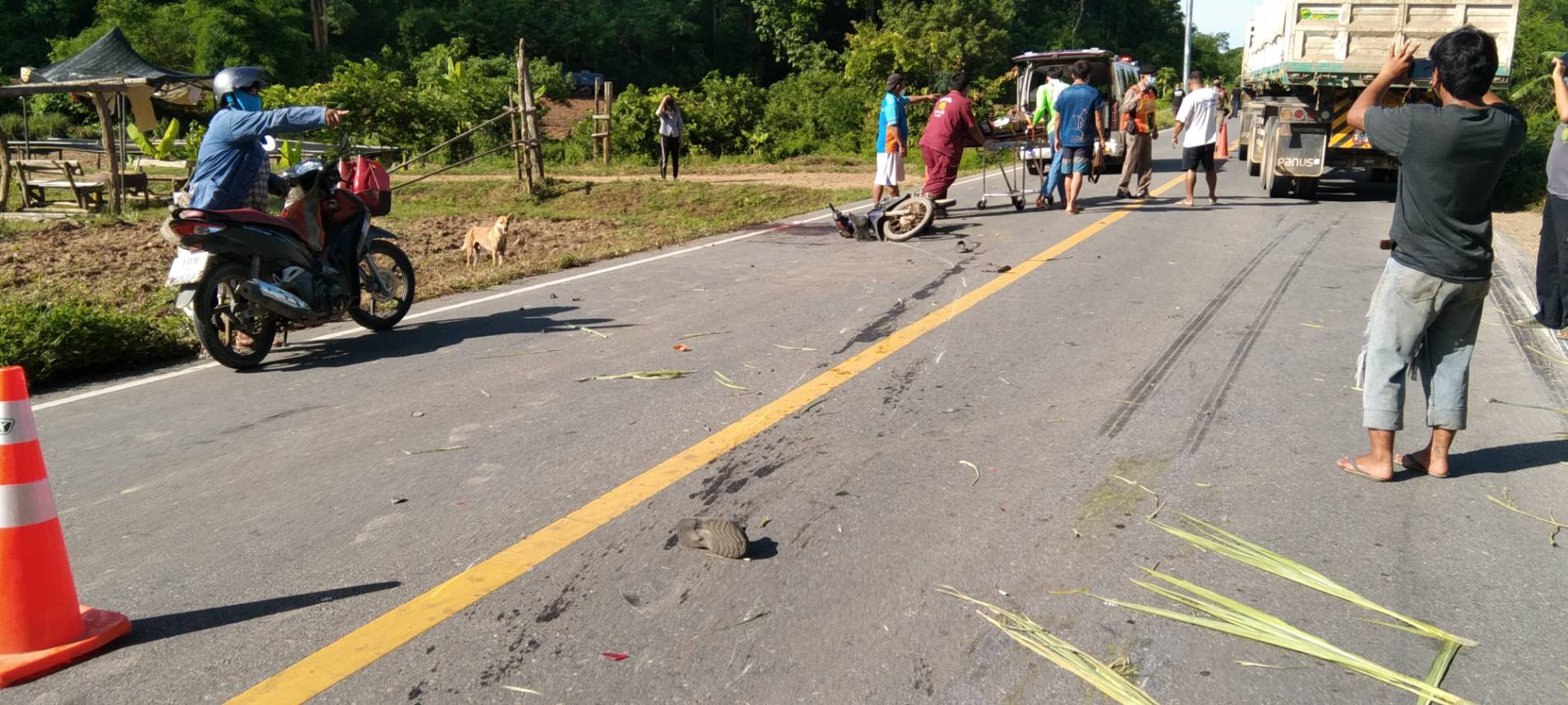 เมื่อเวลา 08.30 น.ของวันที่ 22 มิถุนายน พ.ศ. 2565 ร.ต.อ.ส่งศักดิ์ พรมมา รอง สว.สอบสวน สภ สอง ปฎิบัติหน้าที่พนักงานสอบสวรประจำวันสภ.สอง ได้รับแจ้งจากวิทยุเวียงพระลอว่าได้มีรถพ่วงชนรถจักยายนต์มีผู้บาดเจ็บบนท้องถนนระหว่างหลักกิโลเมตรที่5-6 บนถนนทางหลวงหมาเลข 1120 ถนนสายเชียงม่วน แพร่ จึงแจ้งให้ พ.ต.อ. บำรุง น้อมเศียร ผกก.สภ สอง จ.แพร่ทราบตามลำดับประสานสมาคมกู้ภัยสองรวมใจ พร้อมรุดที่เกิดเหตุพบรถจยย.ฮอนด้าสีเทาดำจอดล้มคว่ำอยู่กลางถนนเลยฝั่งขาล่องพบคนที่สมาคมกู้ภัยสองรวมใจกำลังให้การปฐมพยาบาลเพื่อนำส่งผู้บาดเจ็บส่งโรงพยาบาลเพื่อรักษาอาการอาการเบื้องต้นพบข้อเท้าขวามีกระดูกโผล่ออกมาและมีบาดแผลที่บริเวณศรีษะแตกบวมทราบชื่อคือ นายจรัส (สงวนนามสกุล) อายุ53ปี อยู่บ้าน หมู่ที่ 4 บ้านนาไร่เดียว ตำบลเตาปูน อำเภอสอง จังหวัดแพร่ ซึ่งได้อาศัยอยู่กับญาติๆในบ้านนาและเป็นคนเฝ้าไซโลข้าวโพด
