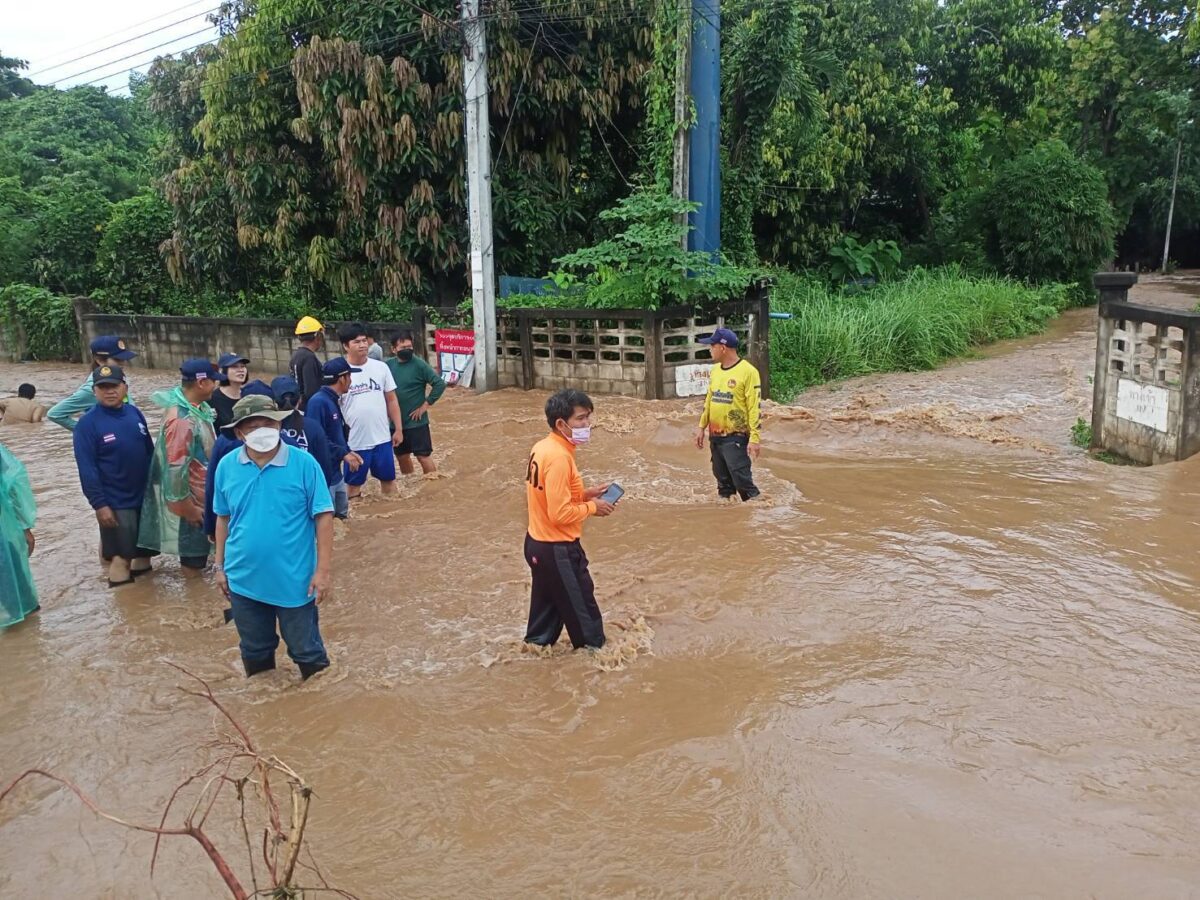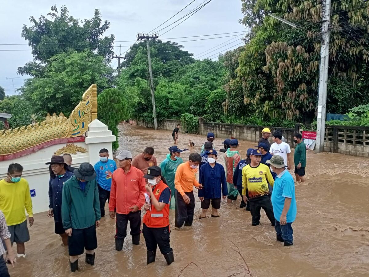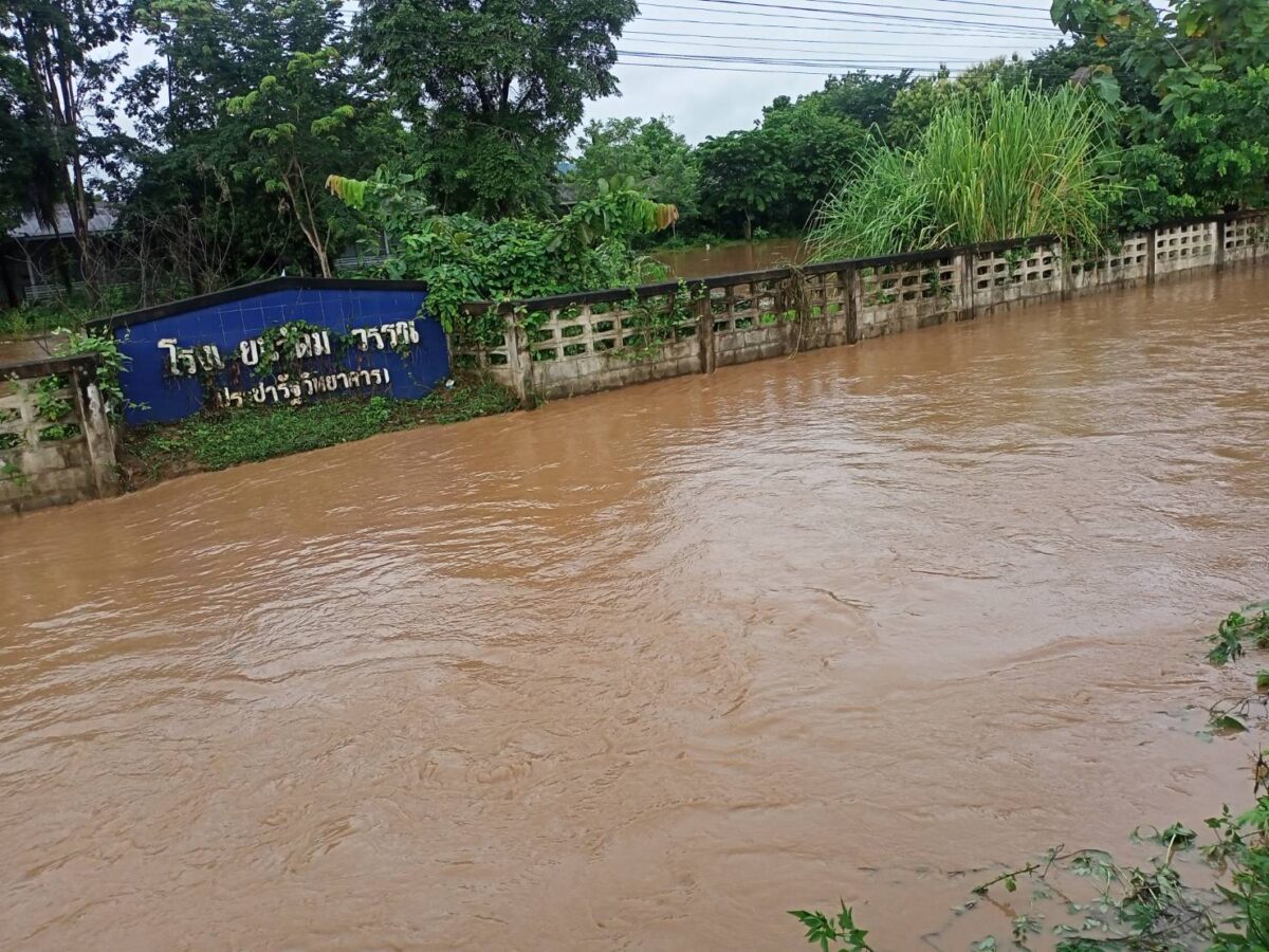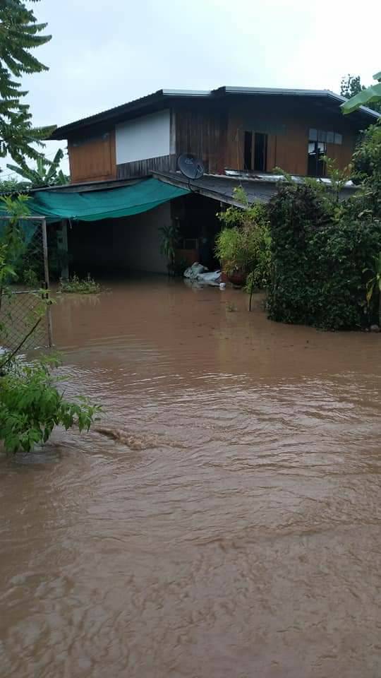 ชาวบ้านมณีวรรณ ต.ป่าแมต อ.เมืองแพร่ ตื่นกลางดึกน้ำล้นอ่างเก็บน้ำห้วยผาคำไหลเข้าท่วมหมู่บ้าน