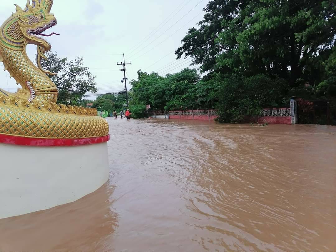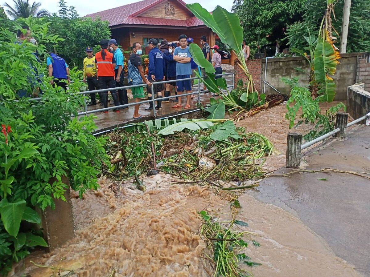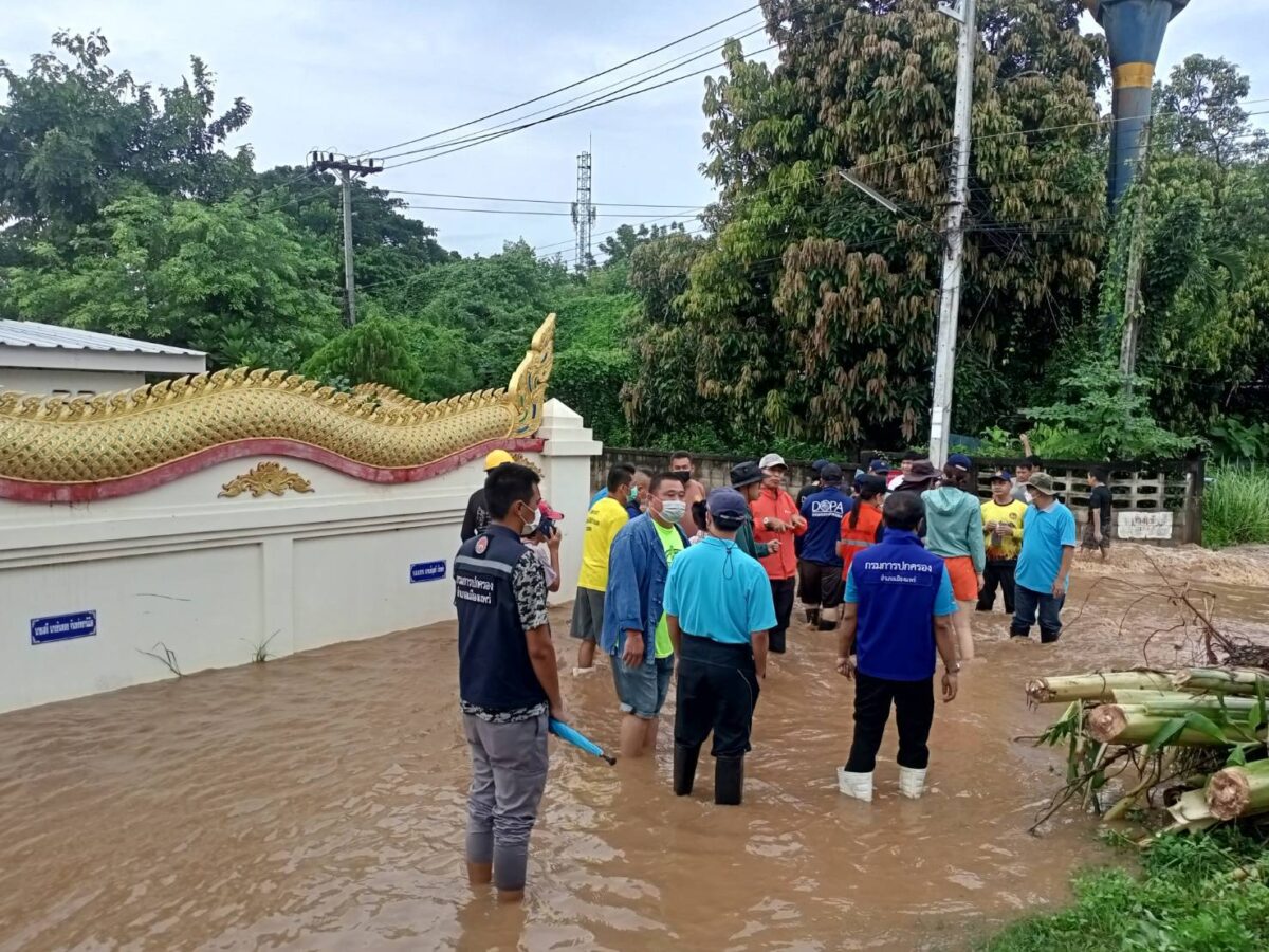 ชาวบ้านมณีวรรณ ต.ป่าแมต อ.เมืองแพร่ ตื่นกลางดึกน้ำล้นอ่างเก็บน้ำห้วยผาคำไหลเข้าท่วมหมู่บ้าน