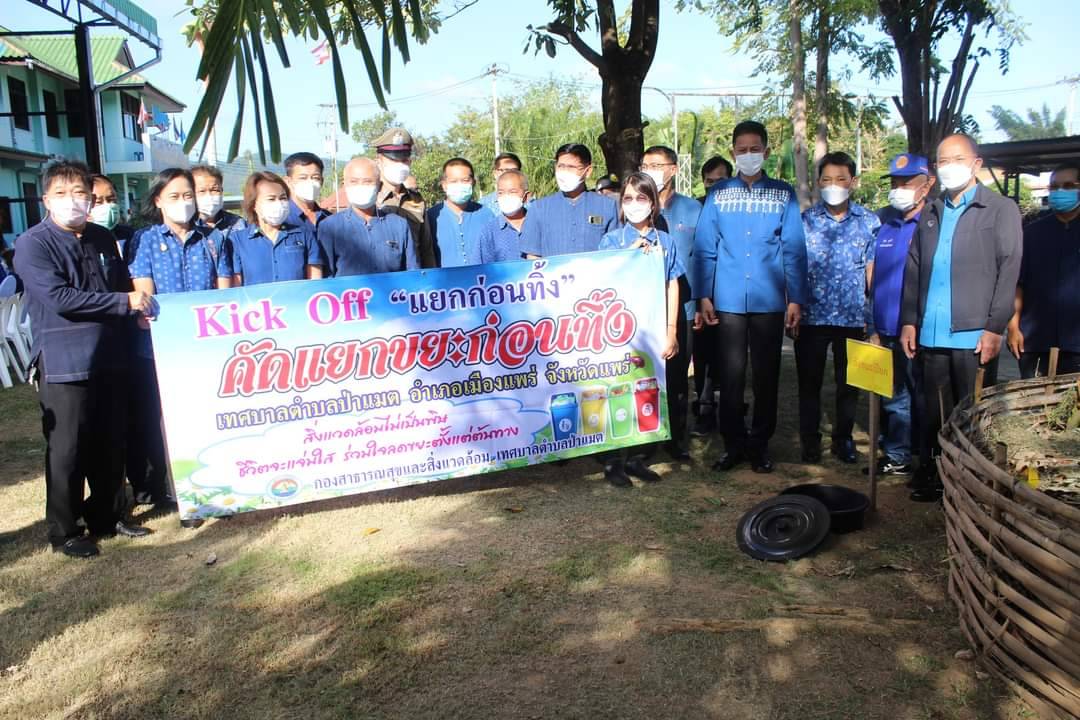 เมื่อวันที่ 16 พฤศจิกายน 2565 เทศบาลตำบลป่าแมต อำเภอเมือง จังหวัดแพร่ นายสุภวัฒน์ ศุภศิริ นายกเทศมนตรีตำบลป่าแมต มอบหมายให้ นายวีระศักดิ์ ทองพลาย รองนายกเทศมนตรีฯ และคณะผู้บริหาร พร้อมด้วยปลัดเทศบาล รองปลัดเทศบาล ผู้อำนวยการกอง หัวหน้าสำนักปลัดเทศบาล หัวหน้าฝ่าย ข้าราชการ พนักงานเจ้าหน้าที่ ประธานสภาเทศบาล สมาชิกสภาเทศบาล ร่วมกิจกรรม Kick Off รณรงค์การจัดทำถังขยะเปียก ลดโลกร้อน จังหวัดแพร่ ร่วมกับชาวตำบลป่าแมต พร้อมใจ Kick Off จัดทำถังขยะเปียก ลดโลกร้อน 100% ประจำปีงบประมาณ 2566