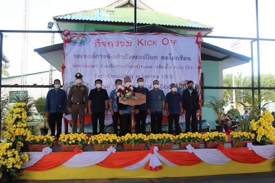 โดยได้จัดกิจกรรมสร้างความรู้ความเข้าใจ เกี่ยวกับการจัดทำถังขยะเปียกลดโลกร้อนในครัวเรือนที่ถูกวิธี โดยดำเนินการเชิงรุกและใช้กลยุทธ์เคาะประตูบ้าน (Knock Door Marketing) ไปยังครัวเรือนในเขตพื้นที่เพื่อความพร้อมในกระบวนการสุ่มตรวจ ติดตาม จากผู้ประเมินภายนอก โดยมี นายธาตรี บุญมาก (รองผู้ว่าราชการจังหวัดแพร่) รักษาราชการแทนผู้ว่าราชการจังหวัดฯ เป็นประธานเปิดกิจกรรม Kick Off กล่าวรายงานโดย นายต่อพงษ์ ทับทิมโต (ท้องถิ่นจังหวัดแพร่) มี นายประพจน์ สุขพัทธี (ท้องถิ่นอำเภอเมืองแพร่) , สถานีตำรวจภูธรเมืองแพร่ , หัวหน้าส่วนราชการ , อปท.ในเขตอำเภอเมืองแพร่ , กำนัน ผู้ใหญ่บ้าน อสม. และประชาชนในเขตพื้นที่ เข้าร่วมกิจกรรม