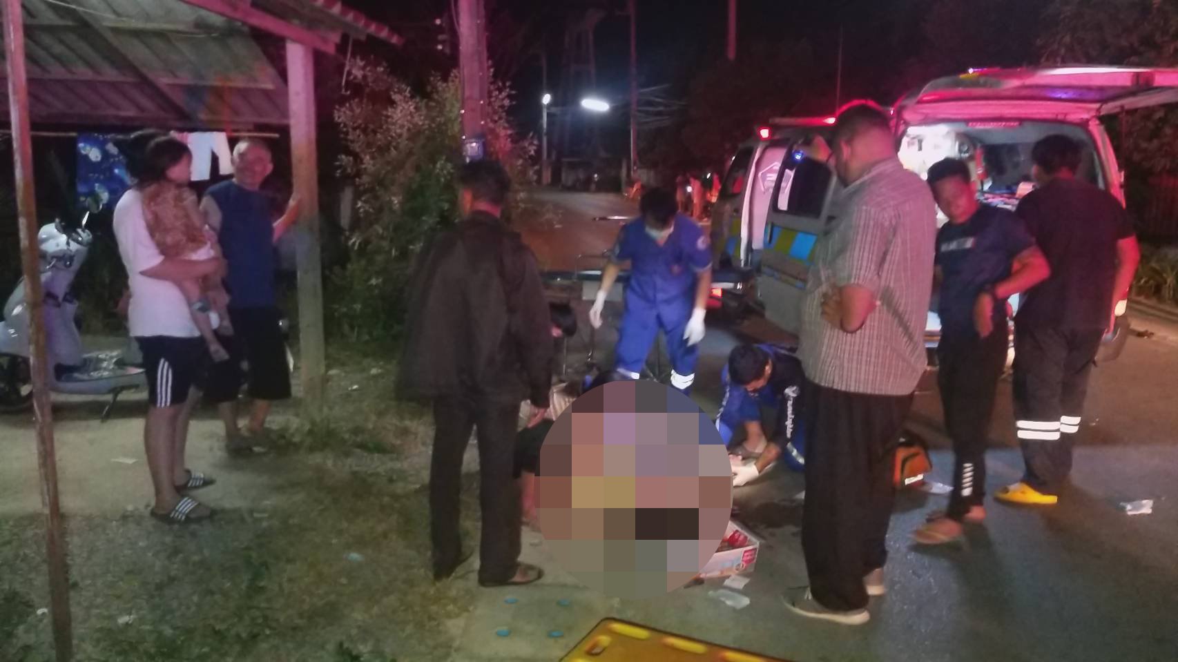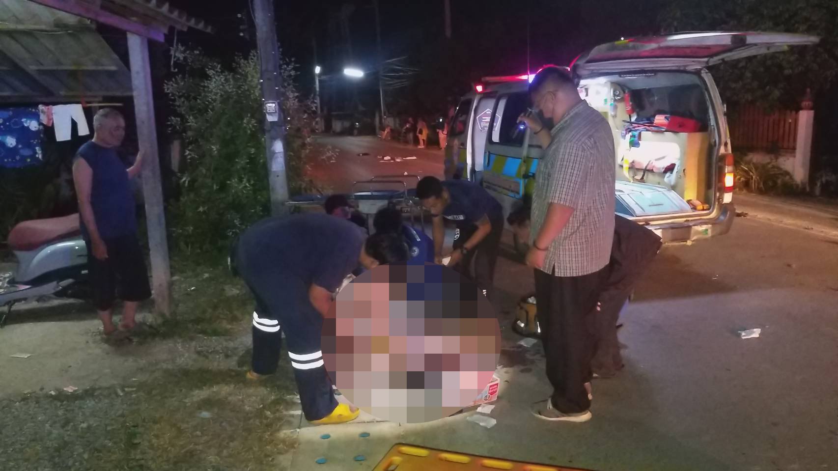 ที่เกิดเหตุบริเวณข้างถนน พบคนขับจักรยานยนต์ที่เป็นนักศึกษาชาย ถูกรถยนต์กระบะ คู่กรณีชน กระเด็นตกข้างถนน บาดเจ็บสาหัส ขาผิดรูป ยังรู้สึกตัว ทราบชื่อภายหลัง นายชโยดม (ขอสงวนนามสกุล) อายุ 19 ปี เป็นราษฏร ม.1 ต.บ้านกวาง อ.สูงเม่น จ.แพร่ เป็นนักศึกษาคณะวิทยาศาสตร์การแพทย์ มหาวิทยาลัยแห่งหนึ่ง หน่วยกู้ภัย เร่งนำส่ง ร.พ.