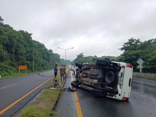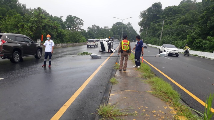เมื่อเวลา 12.30 น.วันที่ 31 ก.ค.66 ร.ต.อ.ณัฐวุฒิ มณีกาศ รองสารวัตรสอบสวน สภ.ห้วยไร่ ปฏิบัติหน้าที่พนักงานสอบสวนประจำวัน สภ.ห้สยไร่ อ.เด่นชัย จ.แพร่ ได้รับแจ้งเหตุ รถยนต์กระบะเสียหลักขณะขับลงเขาพลึง ถนนเด่นชัย -อุตรดิตถ์ เลนขาขึ้น ก.ม. ก.ม.352 ม.2 ต.ห้วยไร่ อ.เด่นชัย ทำให้รถหมุนชนเสาไฟกิ่งบริเวณเกาะกลางถนนจนเสาไฟล้มขวางถนนเลนขาล่อง ส่วนรถยนต์กระบะโตโยต้า ลีโว่ สีขาว ทะเบียนอยุธยา เสียหลัก พลิกมาคว่ำขวางกลางถนนเลนขาล่อง คนขับไม่ได้รับบาดเจ็บ !!! มีทรัพย์สินทางราชการได้รับความเสียหาย ทางตำรวจ สภ.ห้วยไร่ ร่วมกับหน่วยกู้ภัยทางจังหวัดอุตรดิตถ์ ซึ่งตั้งจุดช่วยเหลือการจารจร บนเขาพลึง ได้ให้การช่วยเหลืออำนวยความสะดวกด้านการจารจร หมวดการทางเด่นชัย ช่วยนำทรายและผงกันลื่นเทบริเวณที่เกิดเหตุเนื่องจากมีคราบน้ำมันเกรงจะมีอุบัติเหตุเกิดขึ้นภายหลัง ประสานรถยกมาทำการยกรถออกจากที่เกิดเหตุเพราะเป็นช่วงเวลาเดินทางกลับของวันหยุดยาว