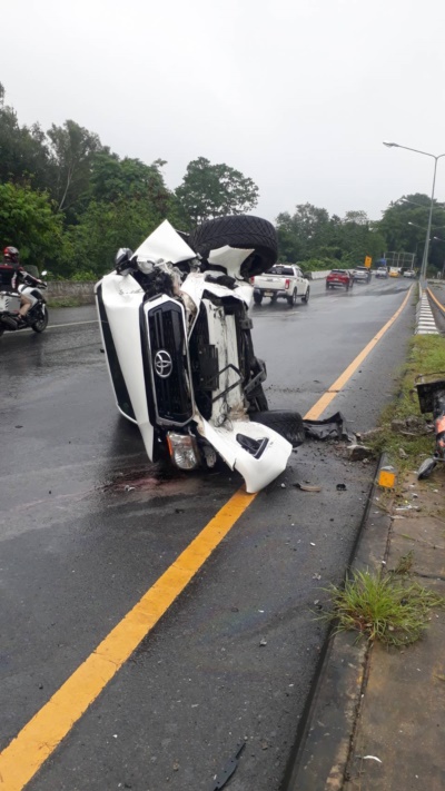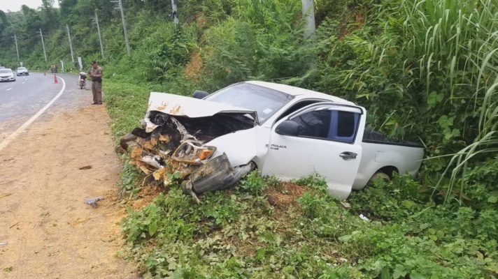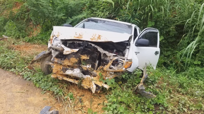 ตรวจที่เกิดเหตุพบรถยนต์กระบะโตโยต้า แค็ป สีขาว ทะเบียนลำพูน ตกข้างถนนสภาพหน้ารถพังยับเยิน พบคนขับ น.ส.เกศริน อายุ 42 ปี ชาว ต.ห้วยยาบ อ.บ้านธิ จ.ลำพูน นายอำนวย 64 ปี ได้รับบาดเจ็บ หน่วยกู้ชีพ- กู้ภัย ข่วนปฐมพยาบาลเบื้องต้น ก่อนนำส่ง ร.พ สมเด็จพระยุพราชเด่นชัย โดยขับจากลำพูน ไป อุตรดิตถ์ ขณะฝนตกรถได้เสียหลักจนตกข้างทาง ทางเจ้าหน้าตำรวจ ได้ตรวจบันทึกที่เกิดเหตุเป็นหลักฐานประสานรถยกมาดำเนินการยกรถไปไว้ที่ สภ.ห้วยไร่