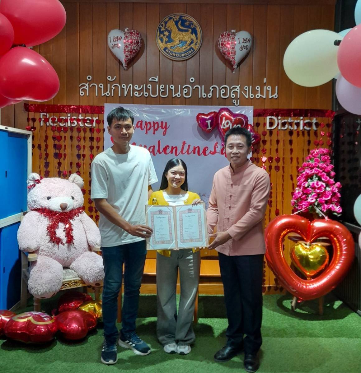 เมื่อวันศุกร์ที่ 14 กุมภาพันธ์ 2568 เวลา 09.00 น. นายนคร สายยืด นายอำเภอสูงเม่น จ.แพร่ ร่วมแสดงความยินดีกับคู่รักในการจดทะเบียนสมรส เนื่องในวันวาเลนไทน์ 14 กุมภาพันธ์ 2568 พร้อมมอบของที่ระลึกเพื่อเป็นการแสดงความยินดีและอวยพรให้กับคู่รักที่มาจดทะเบียนสมรสในวันวาเลนไทน์ 14 กุมภาพันธ์ นี้