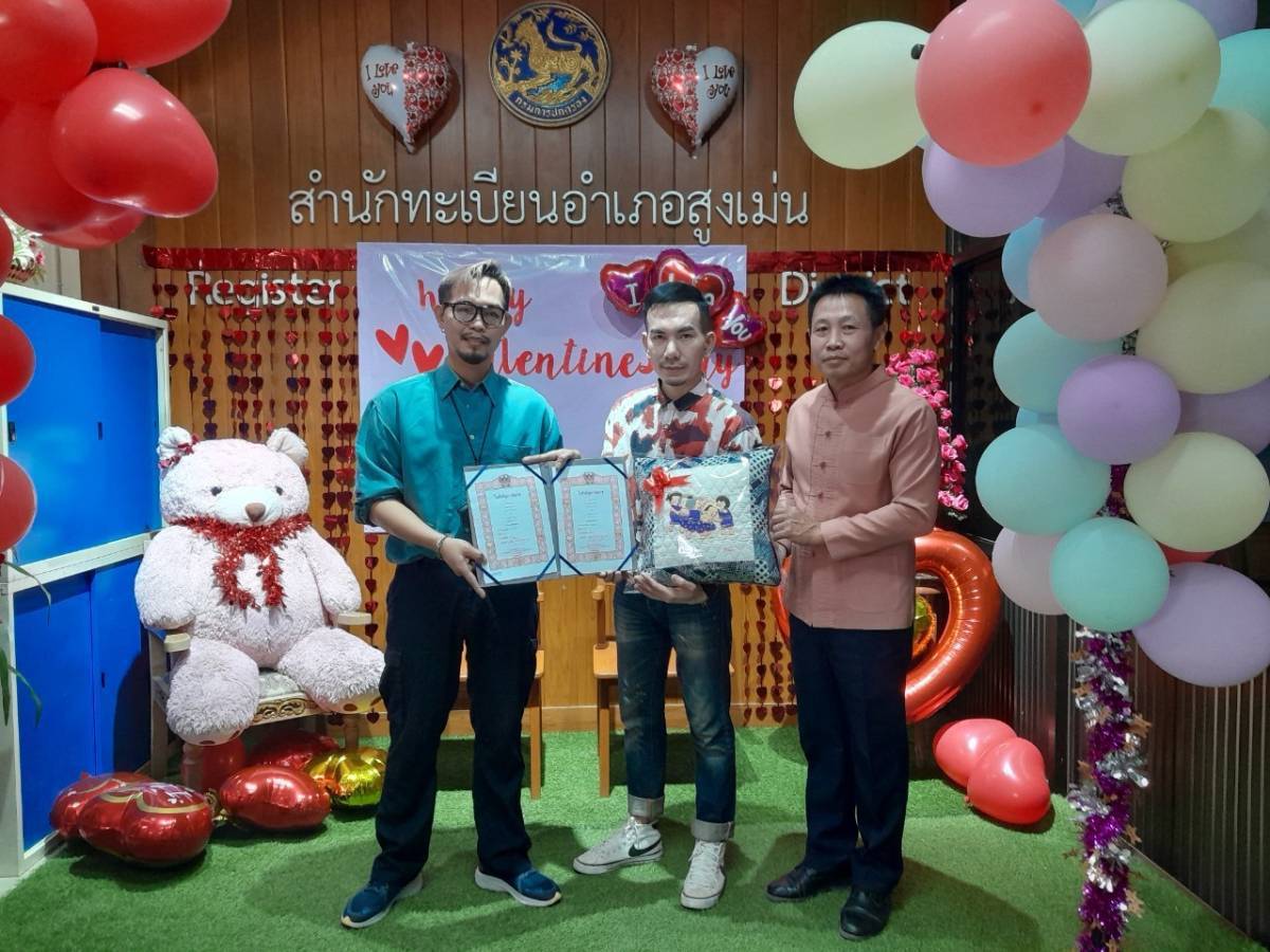 โดยอำเภอสูงเม่นมีคู่รักที่ร่วมจดทะเบียนสมรส มีจำนวน 19 คู่ อายุเฉลี่ยอยู่ระหว่าง 30-40 ปี ซึ่งแต่ละคู่มีความตั้งใจที่จะเลือกวันวาเลนไทน์เป็นวันจดทะเบียนสมรสเพื่อเป็นวันสำคัญของการใช้ชีวิตคู่ ณ สำนักงานทะเบียนที่ทำการปกครองอำเภอสูงเม่น จังหวัดแพร่