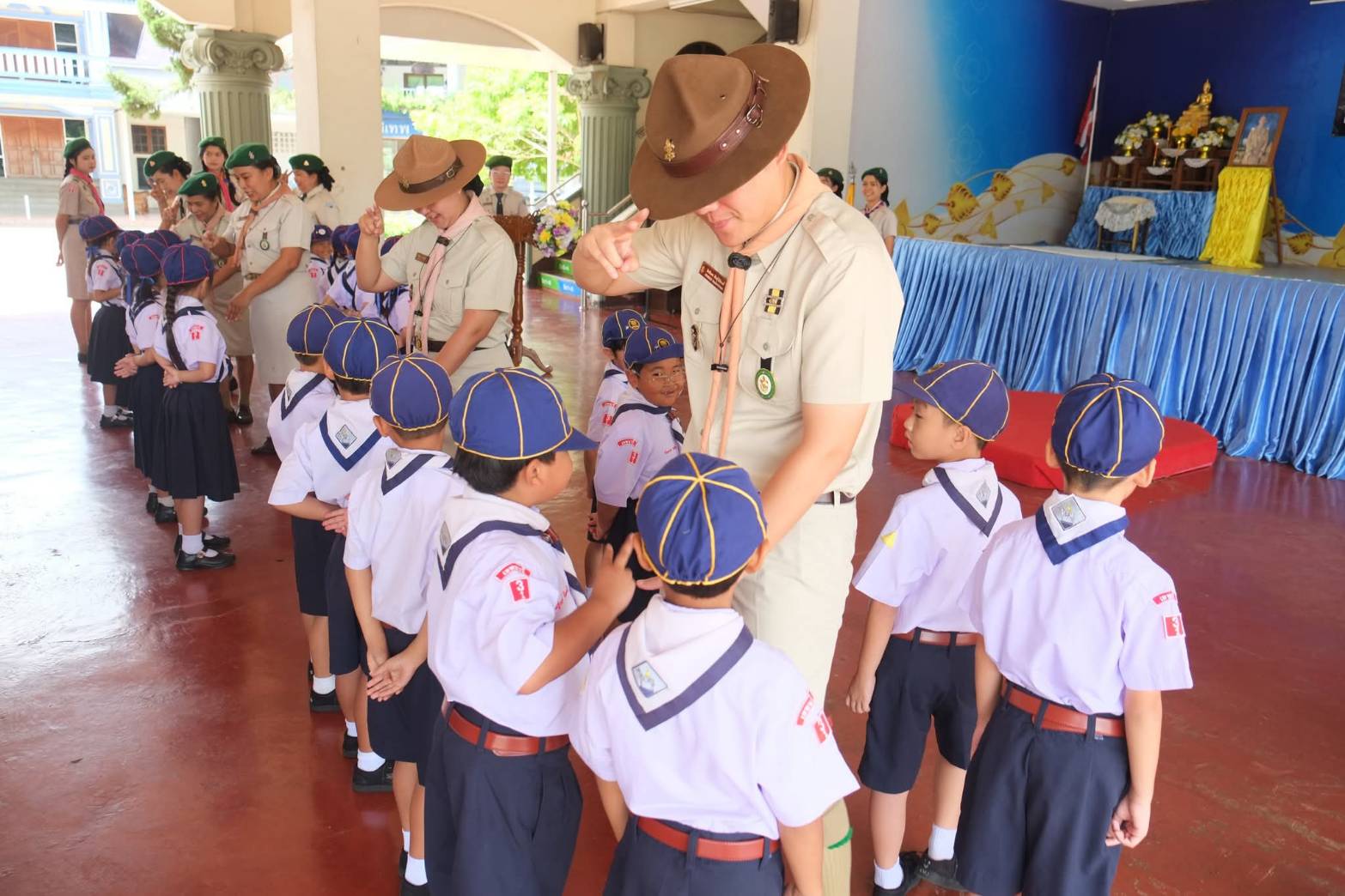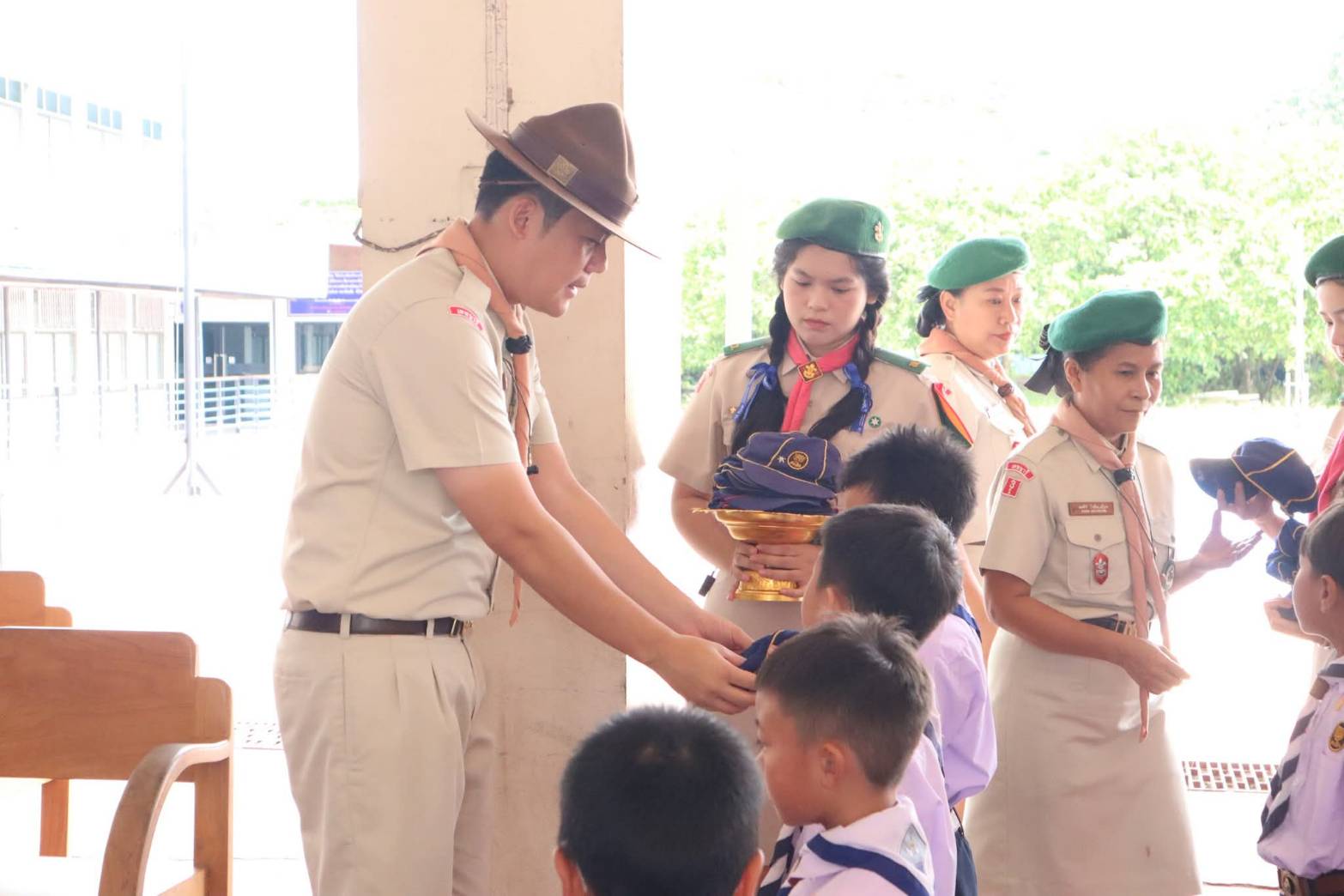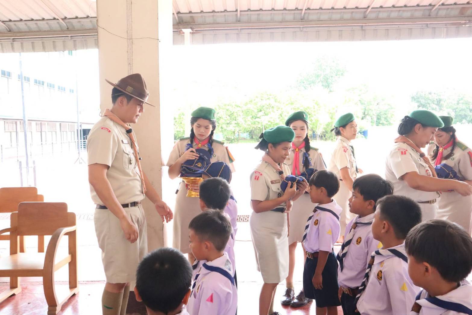 และให้สัญญาว่า(คำปฎิญาณลูกเสือสำรอง) “ข้อ 1 ข้าจะจงรักภักดีต่อชาติ ศาสนา พระมหากษัตริย์ ข้อ 2 ข้าจะยึดมั่นในกฎของลูกเสือสำรองและบำเพ็ญประโยชน์ต่อผู้อื่นทุกวัน” ลูกเสือสำรองรับมอบเครื่องหมายลูกเสือสำรอง และรับหมวกจากผู้กำกับลูกเสือ ประธานในพิธีกล่าวต้อนรับลูกเสือใหม่และให้โอวาท คณะผู้บังคับบัญชาลูกเสือและลูกเสือรุ่นพี่แสดงความยินดีต้อนรับลูกเสือใหม่เข้าประจำกอง ด้วยความภาคภูมิใจ บรรยากาศอบอุ่น ผู้บังคับบัญชาลูกเสือ ลูกเสือสำรองทุกคนที่ร่วมพิธีมีความสุขทั่วกัน