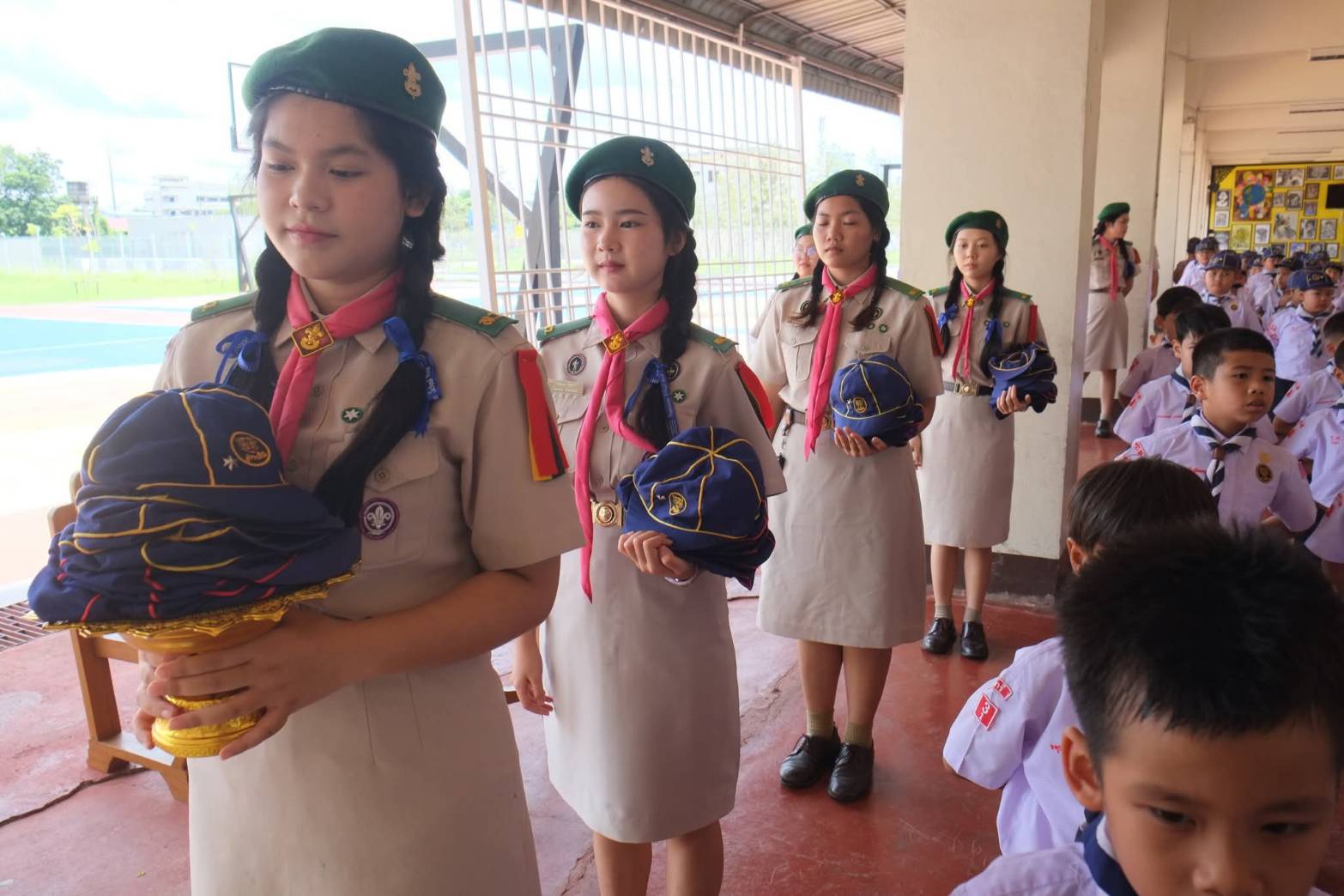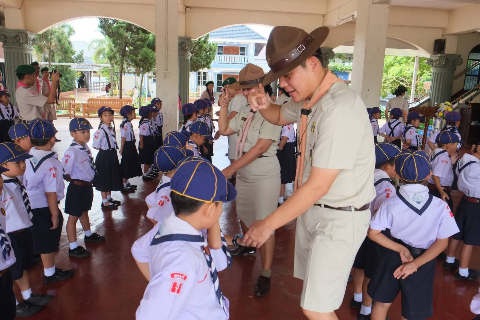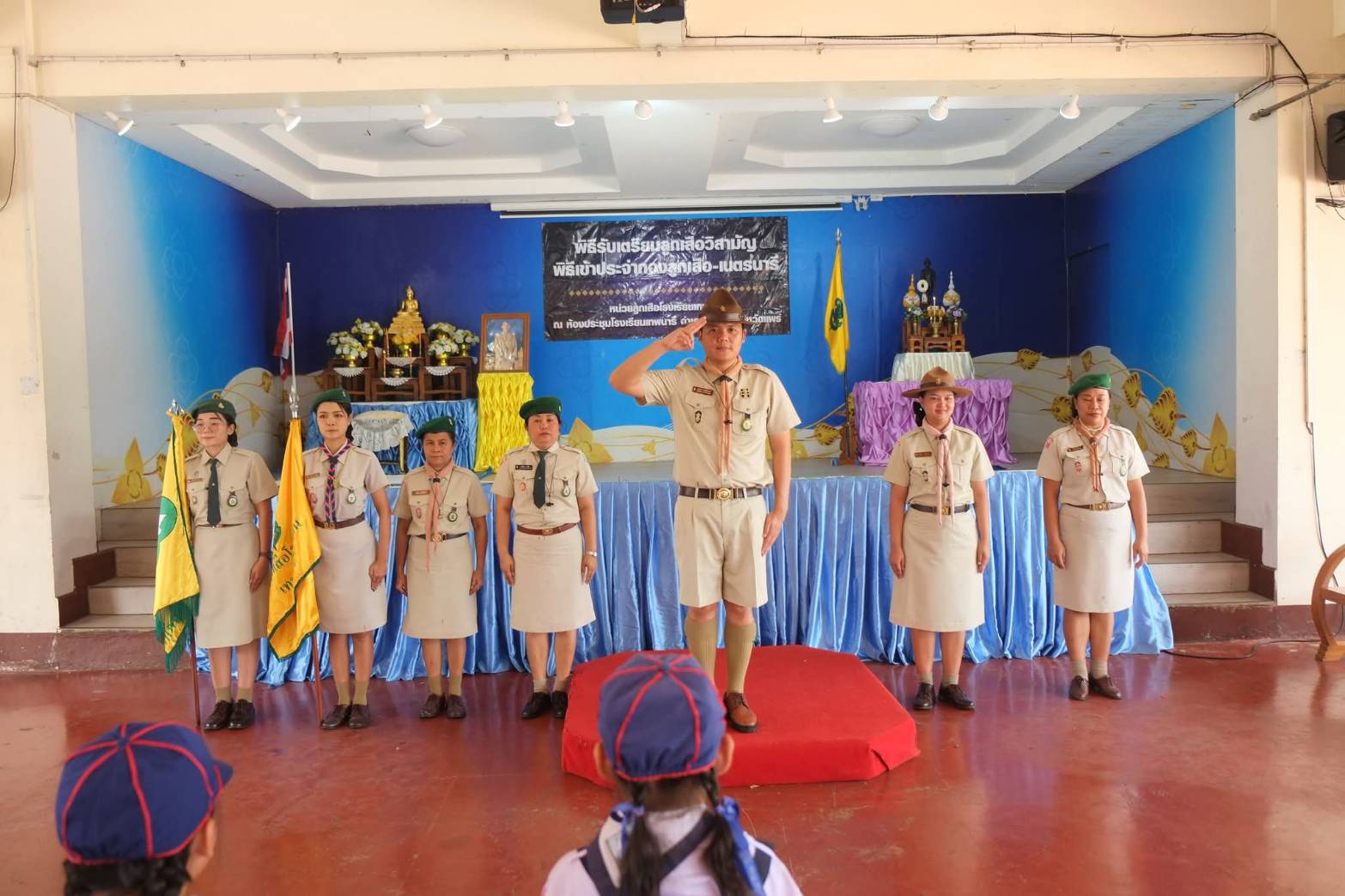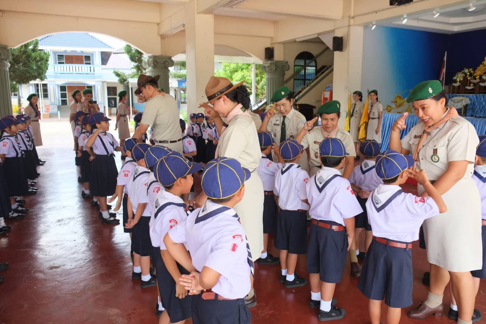 และให้สัญญาว่า(คำปฎิญาณลูกเสือสำรอง) “ข้อ 1 ข้าจะจงรักภักดีต่อชาติ ศาสนา พระมหากษัตริย์ ข้อ 2 ข้าจะยึดมั่นในกฎของลูกเสือสำรองและบำเพ็ญประโยชน์ต่อผู้อื่นทุกวัน” ลูกเสือสำรองรับมอบเครื่องหมายลูกเสือสำรอง และรับหมวกจากผู้กำกับลูกเสือ ประธานในพิธีกล่าวต้อนรับลูกเสือใหม่และให้โอวาท คณะผู้บังคับบัญชาลูกเสือและลูกเสือรุ่นพี่แสดงความยินดีต้อนรับลูกเสือใหม่เข้าประจำกอง ด้วยความภาคภูมิใจ บรรยากาศอบอุ่น ผู้บังคับบัญชาลูกเสือ ลูกเสือสำรองทุกคนที่ร่วมพิธีมีความสุขทั่วกัน