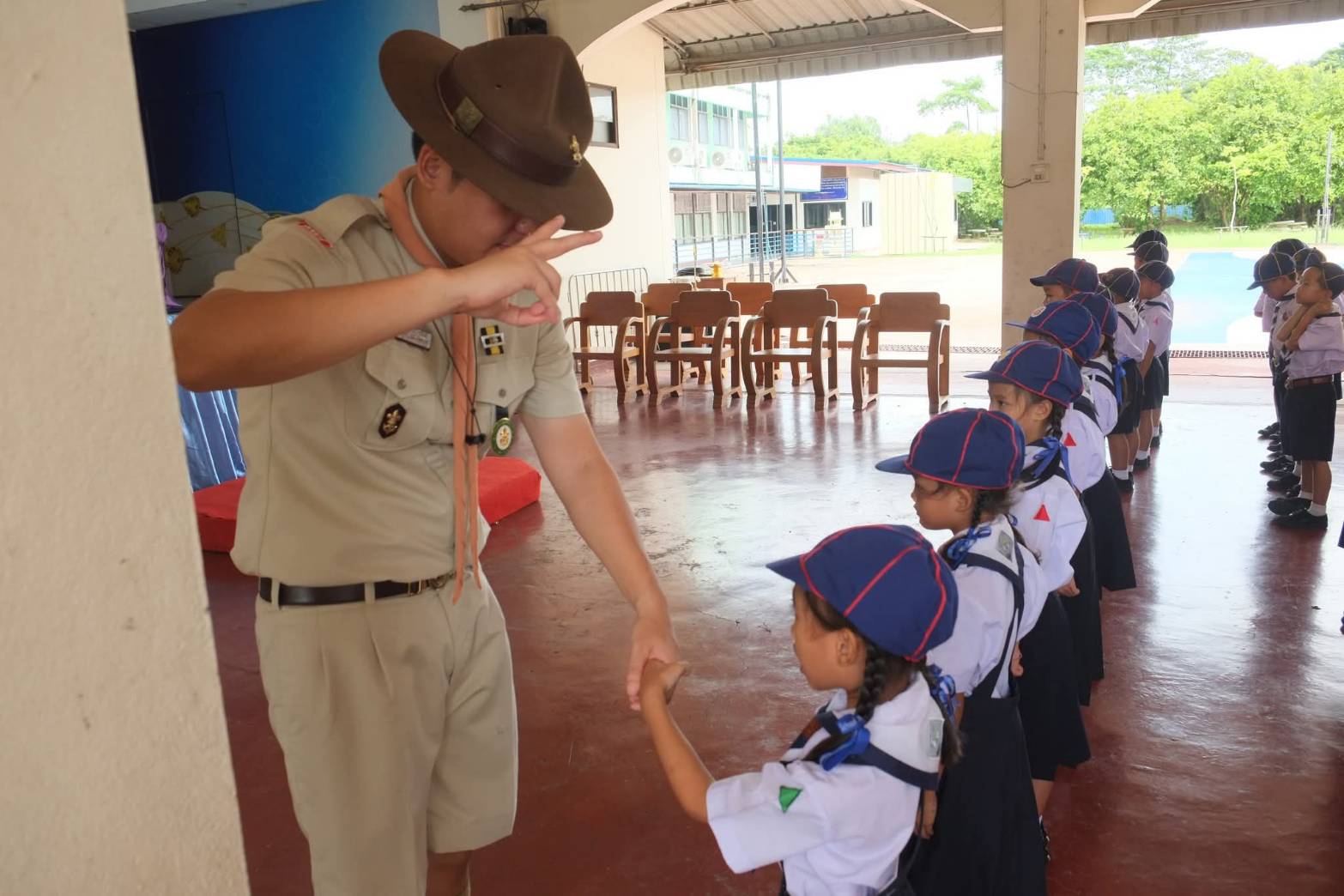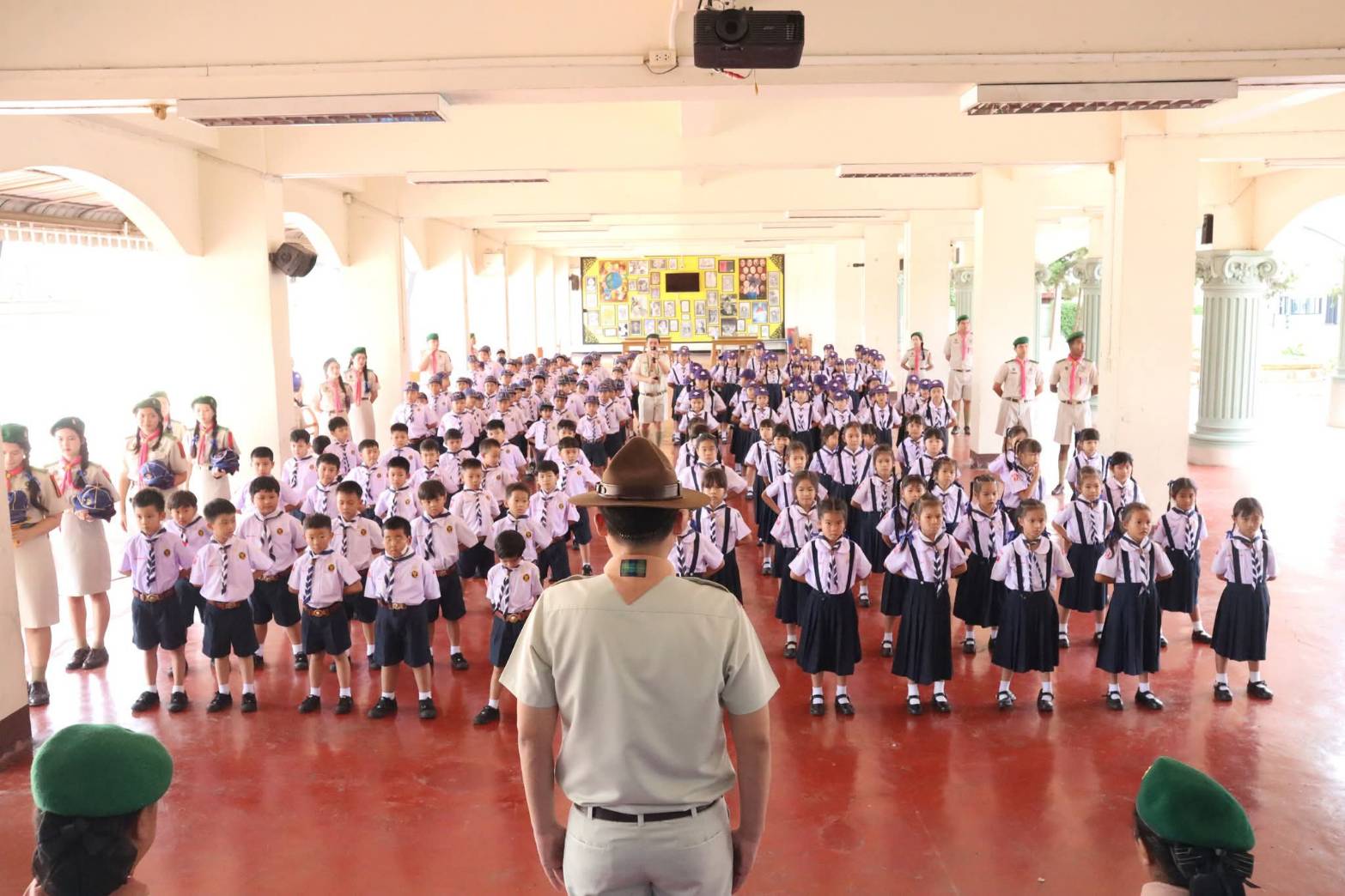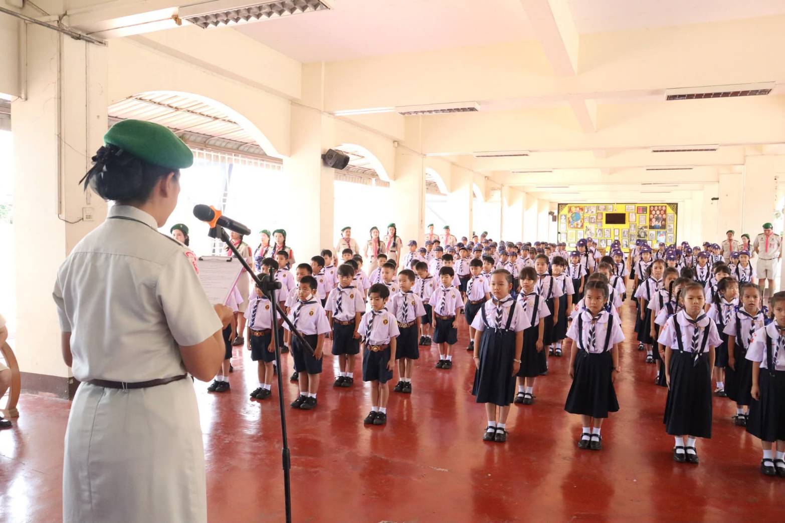 โดยมีนายสิทธิเดช พันธุ์นิติพงศ์ ผู้อำนวยการลูกเสือโรงเรียนเทพนารี เป็นประธานในพิธี ลูกเสือสำรองใหม่ชั้นประถมศึกษาปีที่ 1 ได้ตอบคำถามของผู้กำกับลูกเสือได้อย่างเสียงดังฟังชัด ด้วยความเข้าใจบทบาทหน้าที่ของตนเป็นอย่างดี มีความเข้าใจและสามารถปฏิบัติตามกฎของลูกเสือสำรองที่ว่า