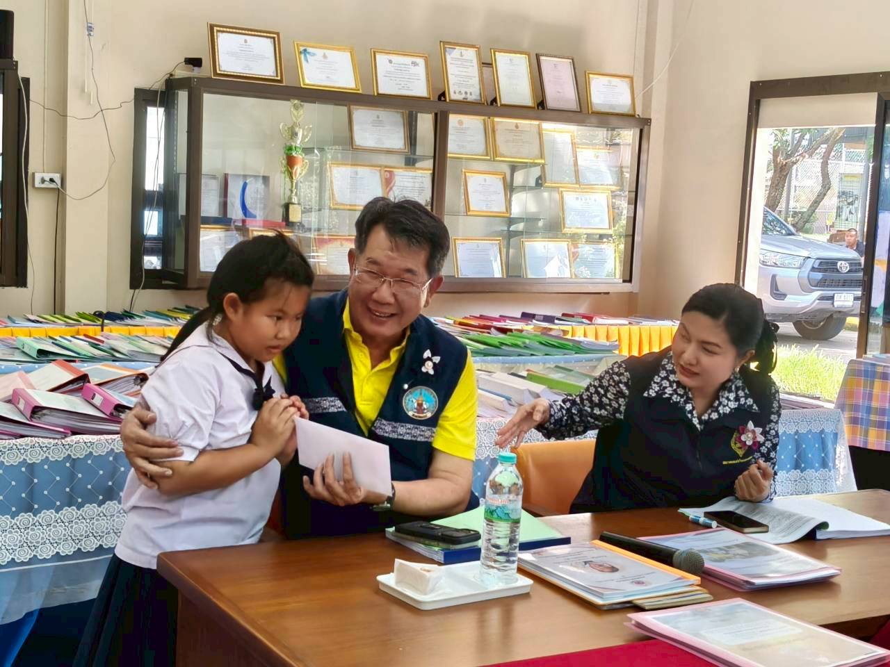 ผอ.รร.รัฐราฎร์บำรุง กล่าวว่า รร.รัฐราษฎร์บำรุง ขอขอบคุณในความเมตตาของผู้ใหญ่ใจดีทุกท่านเป็นอย่างสูง