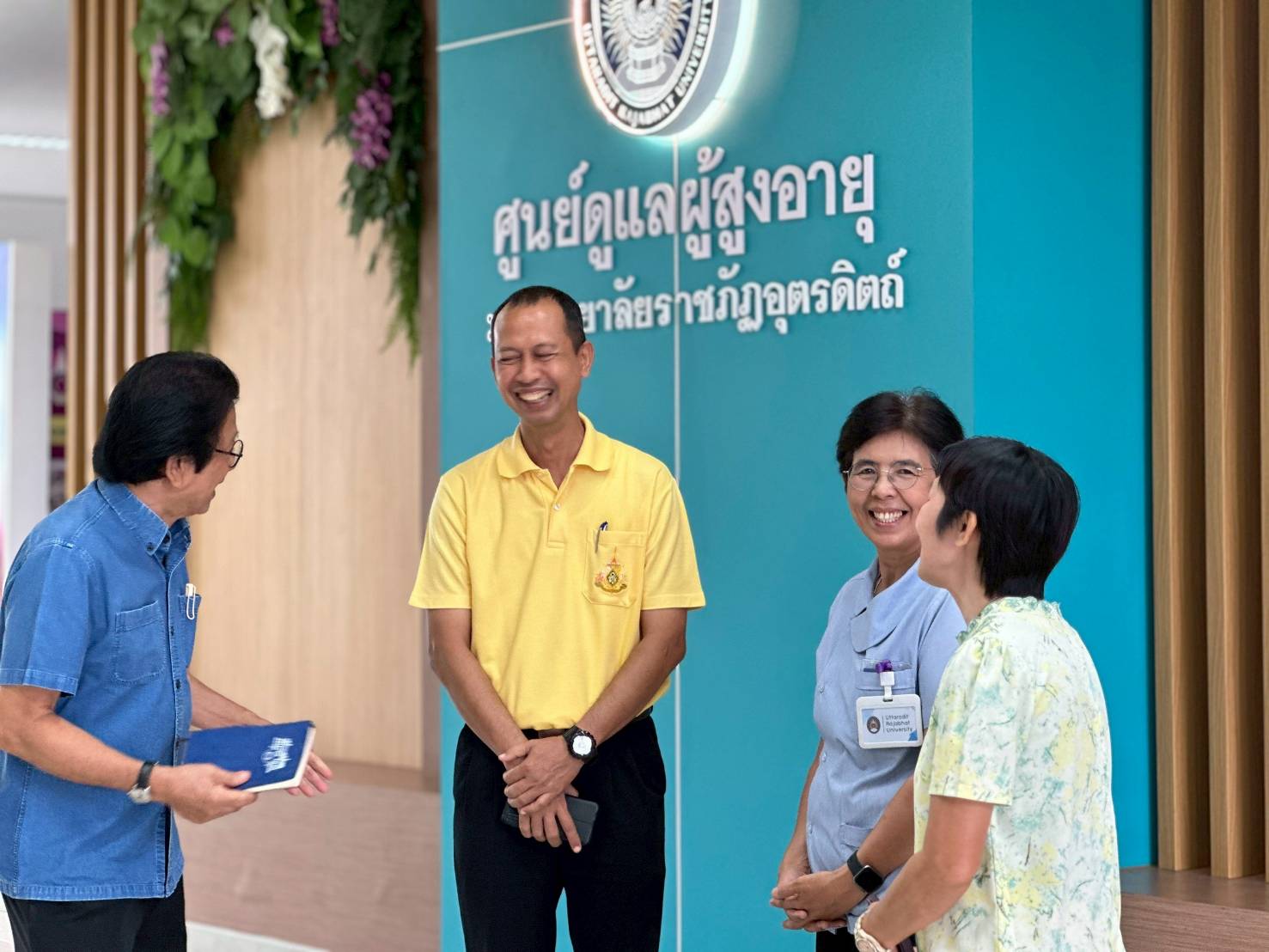 ในการเยี่ยมครั้งนี้ ผศ.ดร.เสรี แสงอุทัย รองอธิการบดีมหาวิทยาลัยราชภัฏอุตรดิตถ์ ให้การต้อนรับ ร่วมด้วย อาจารย์ ดร.กัญญารัตน์ ผึ่งบรรหาร อาจารย์ประจำภาควิชาการพยาบาลพื้นฐาน ผู้ใหญ่และผู้สูงอายุ และ รองศาสตราจารย์ ดร.ณิชารีย์ ใจคำวัง อาจารย์ประจำภาควิชาการพยาบาลอนามัยชุมชน ซึ่งได้พาชมการดำเนินงานและแลกเปลี่ยนมุมมองด้านวิชาการและการดูแลสุขภาพผู้สูงวัยอย่างใกล้ชิด