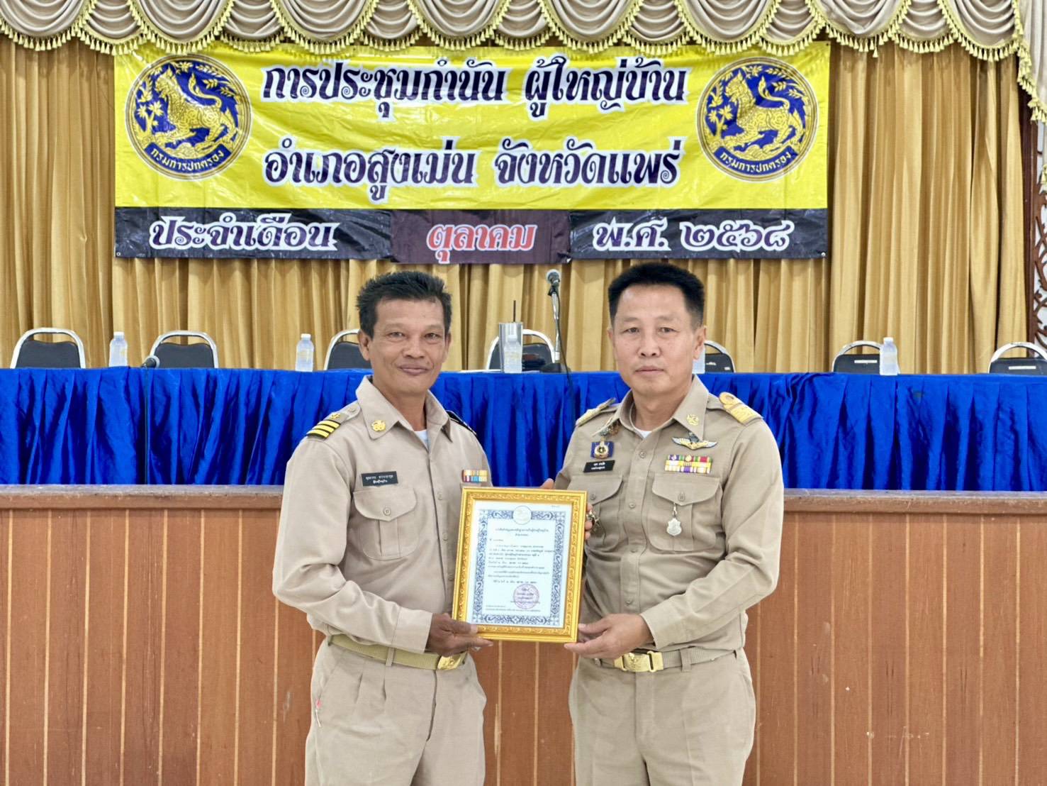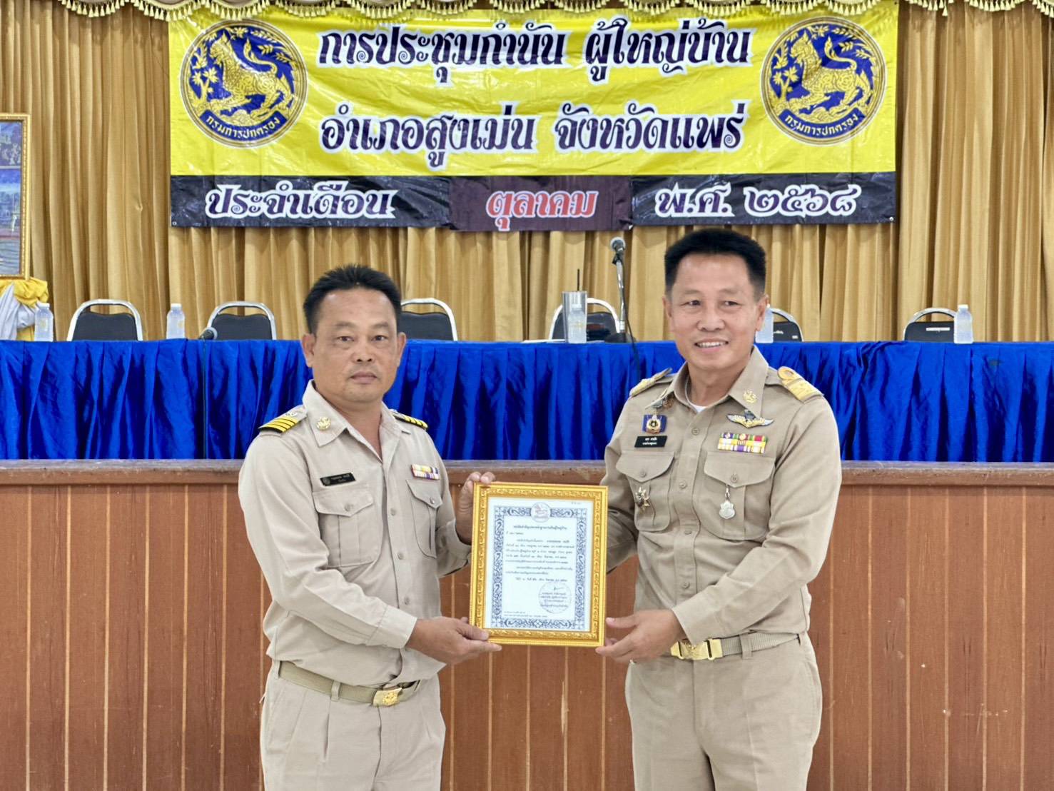 เมื่อวันที่ 2 ตุลาคม 2568 นายนคร สายยืด นายอำเภอสูงเม่น จ.แพร่ ประธานในการประชุมประจำเดือนกำนันผู้ใหญ่บ้านฯ ครั้งที่ 9 ประจำเดือนตุลาคม 2568 เพื่อแจ้งข้อมูล ข่าวสาร หนังสือสั่งการ ระเบียบปฏิบัติต่าง ๆ ของทางราชการ และหารือแนวทางแก้ไขปัญหาร่วมกันตามนโยบายข้อสั่งการจากทางราชการในการดำเนินงาน