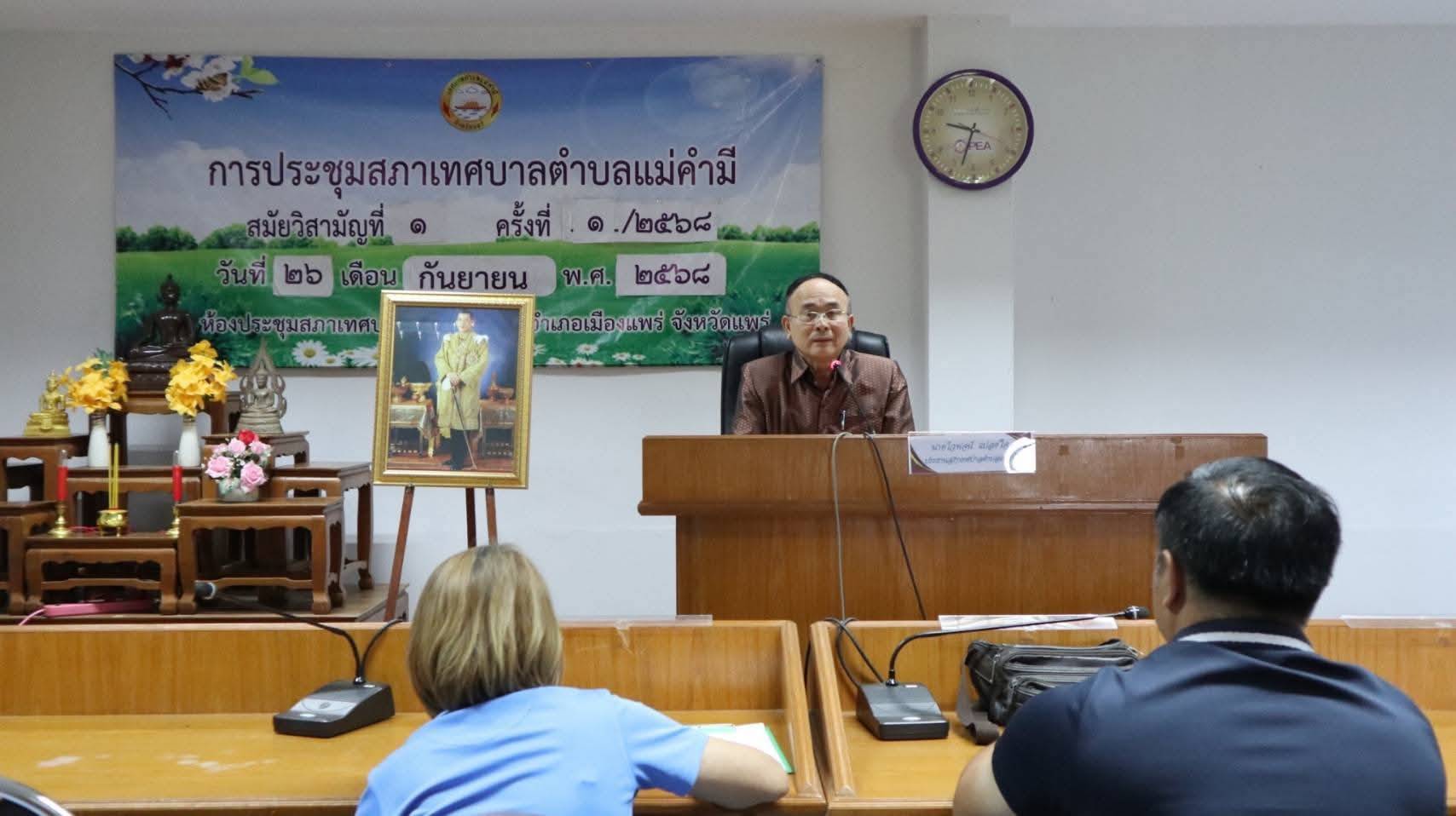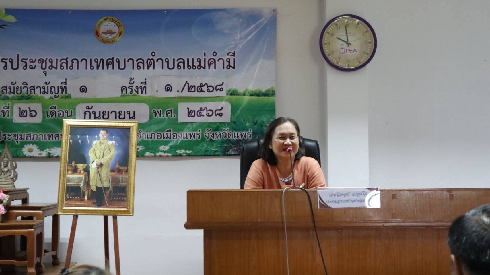 เมื่อวันที่ 2 ตุลาคม 2568 เวลา 09.30 น.นางสร้อยทอง หล้าคำมี นายกเทศมนตรีตำบลแม่คำมี อ.เมือง จ.แพร่ พร้อมด้วยคณะผู้บริหาร และปลัดเทศบาลตำบลแม่คำมี ประชุมพนักงานจ้างในสังกัดเทศบาลตำบลแม่คำมี เพื่อมอบนโยบายและแนวทางการปฏิบัติงาน ประจำปีงบประมาณ พ.ศ.2569 ณ ห้องประชุมสภาเทศบาลตำบลแม่คำมี อำเภอเมืองแพร่ จังหวัดแพร่
