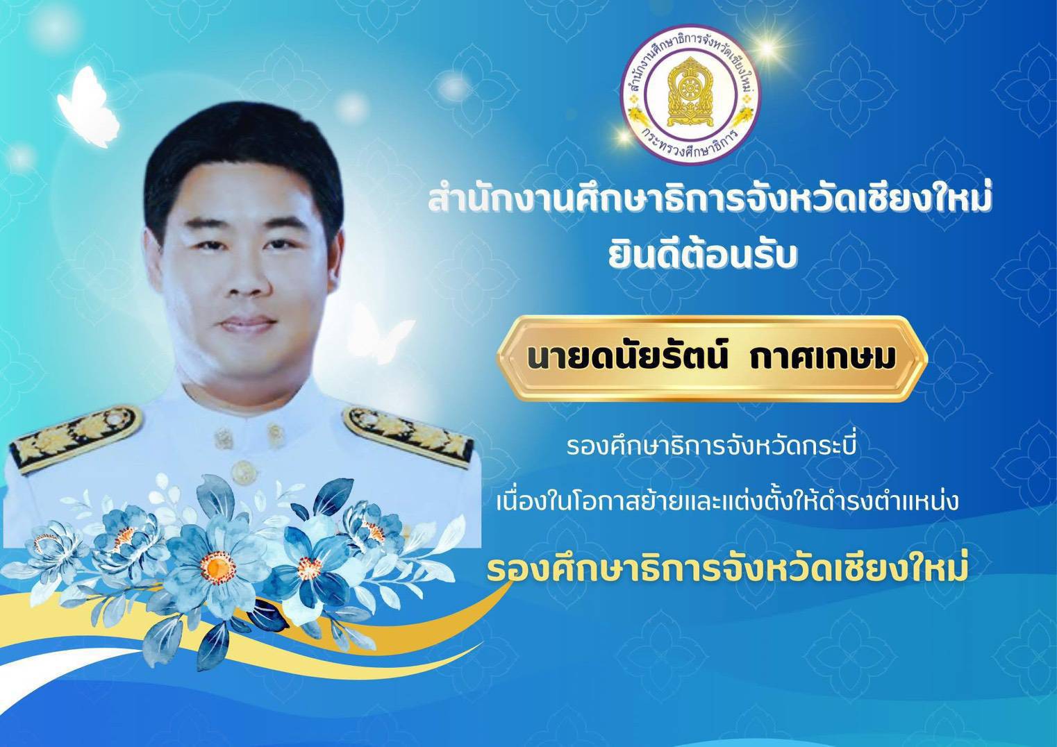 สำนักงานศึกษาธิการจังหวัดเชียงใหม่ ยินดีต้อนรับ นายดนัยรัตน์ กาศเกษม รองศึกษาธิการจังหวัดกระบี่ เนื่องในโอกาสย้ายและแต่งตั้งให้ดำรงตำแหน่ง รองศึกษาธิการจังหวัดเชียงใหม่