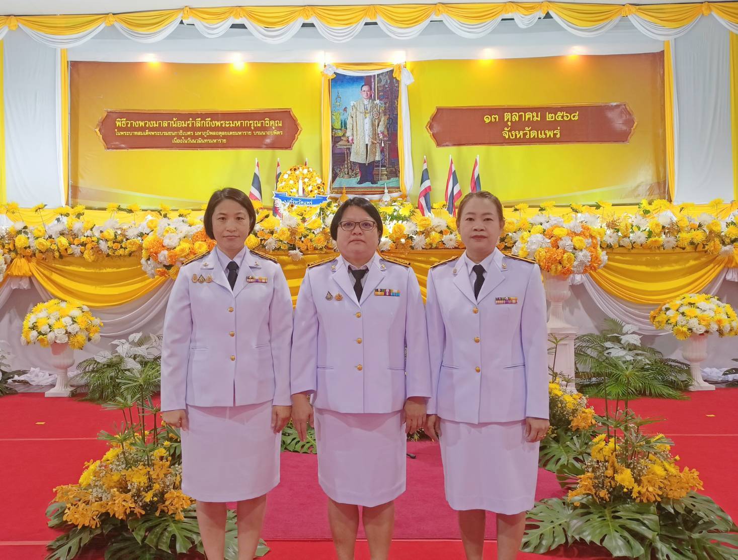 วันจันทร์ที่ 13 ตุลาคม 2568 เวลา 07.00 น. นายสมชัย เลิศประสิทธิพันธ์ ผู้ว่าราชการจังหวัดแพร่ เป็นประธานพิธีวันนวมินทรมหาราช เนื่องในวันคล้ายวันสวรรคต พระบาทสมเด็จพระบรมชนกาธิเบศรมหาภูมิพลอดุลยเดชมหาราช บรมนาถบพิตร พร้อมด้วยข้าราชการ ศาล ทหาร ตำรวจ ผู้นำองค์กรปกครองส่วนท้องถิ่น ผู้นำภาคเอกชน จิตอาสา ประชาชนทุกหมู่เหล่า เข้าร่วมพิธีฯ ซึ่งประกอบด้วยกิจกรรมตักบาตรถวายพระราชกุศล และพิธีวางพวงมาลา เพื่อน้อมรำลึกในพระมหากรุณาธิคุณ เนื่องในวันคล้ายวันสวรรคต พระบาทสมเด็จพระบรมชนกาธิเบศรมหาภูมิพลอดุลยเดชมหาราช บรมนาถบพิตร