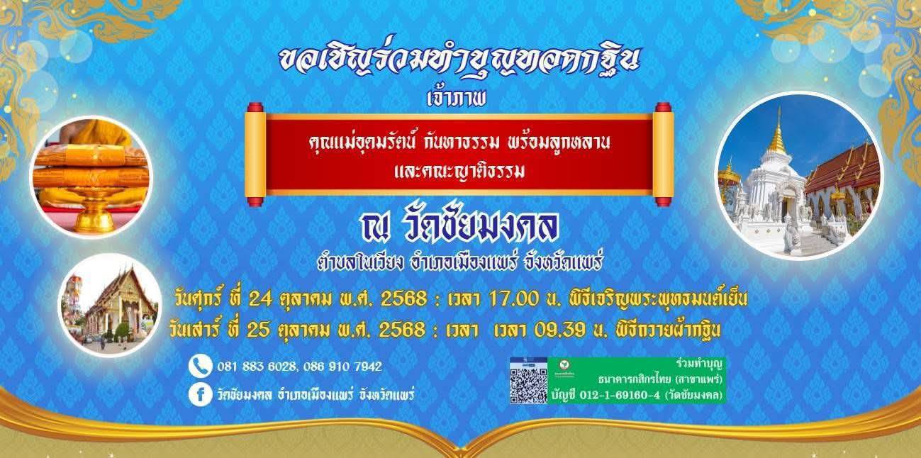 วันเสาร์ที่ 25 ตุลาคม 2568 เวลา เวลา 09.39 น.ถวายผ้ากฐิน