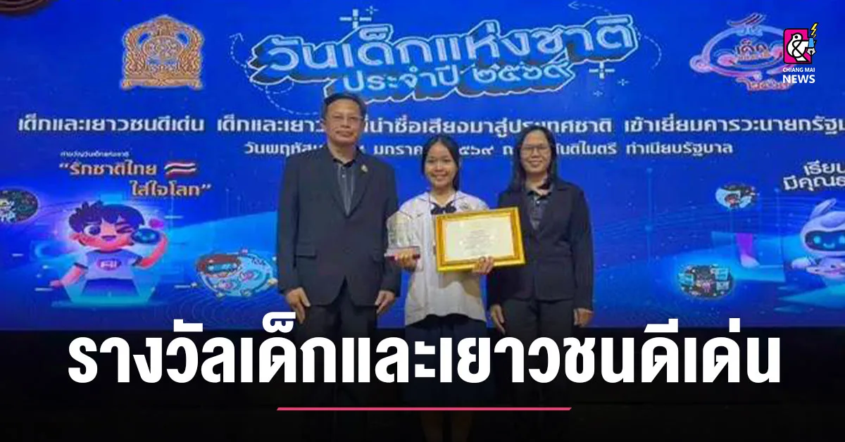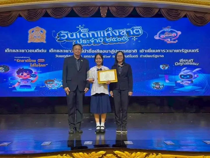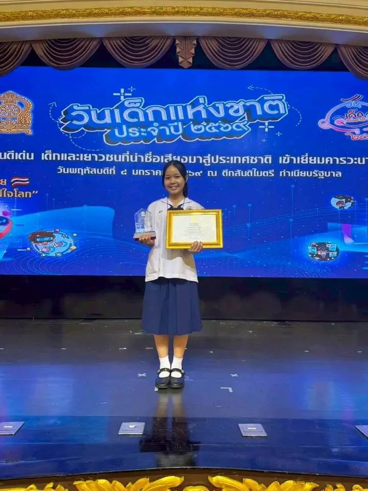เด็กหญิงพรรณภรณ์ ขวานเพชร นักเรียนชั้น ป. 6 รร.วัดเมธังกราวาสฯ ได้รับรางวัลเด็กและเยาวชนดีเด่น ประจำปี 2569