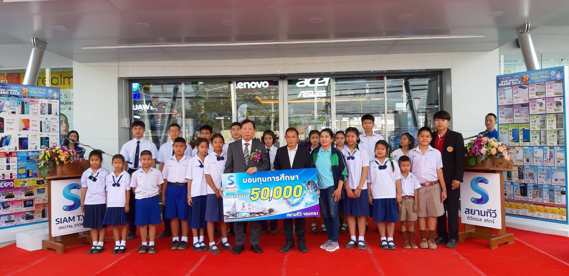 วันเสาร์ที่ 29 กุมภาพันธ์ 2563 เวลา 09.59 น. ที่สยามทีวีดิจิตอลสโตร์ สาขาจอมทอง นายเจริญฤทธิ์ สงวนสัตย์ ผู้ว่าราชการ จ.เชียงใหม่ เป็นประธานในพิธีเปิด สยามทีวีดิจิตอลสโตร์ สาขาจอมทอง และกล่าวแสดงความยินดี โดยมี ดร.พิทักษ์ ปลื้มพิทักษ์กุล กรรมการผู้จัดการ สยามทีวีดิจิตอลสโตร์ มอบของที่ระลึก พร้อมมอบทุนการศึกษา จำนวน 20 ทุน จำนวน 4 โรงเรียน