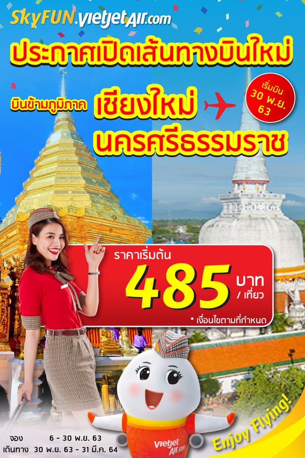 สายการบินไทยเวียตเจ็ท เปิดเส้นทางบินใหม่ เชียงใหม่ – นครศรีธรรมราช