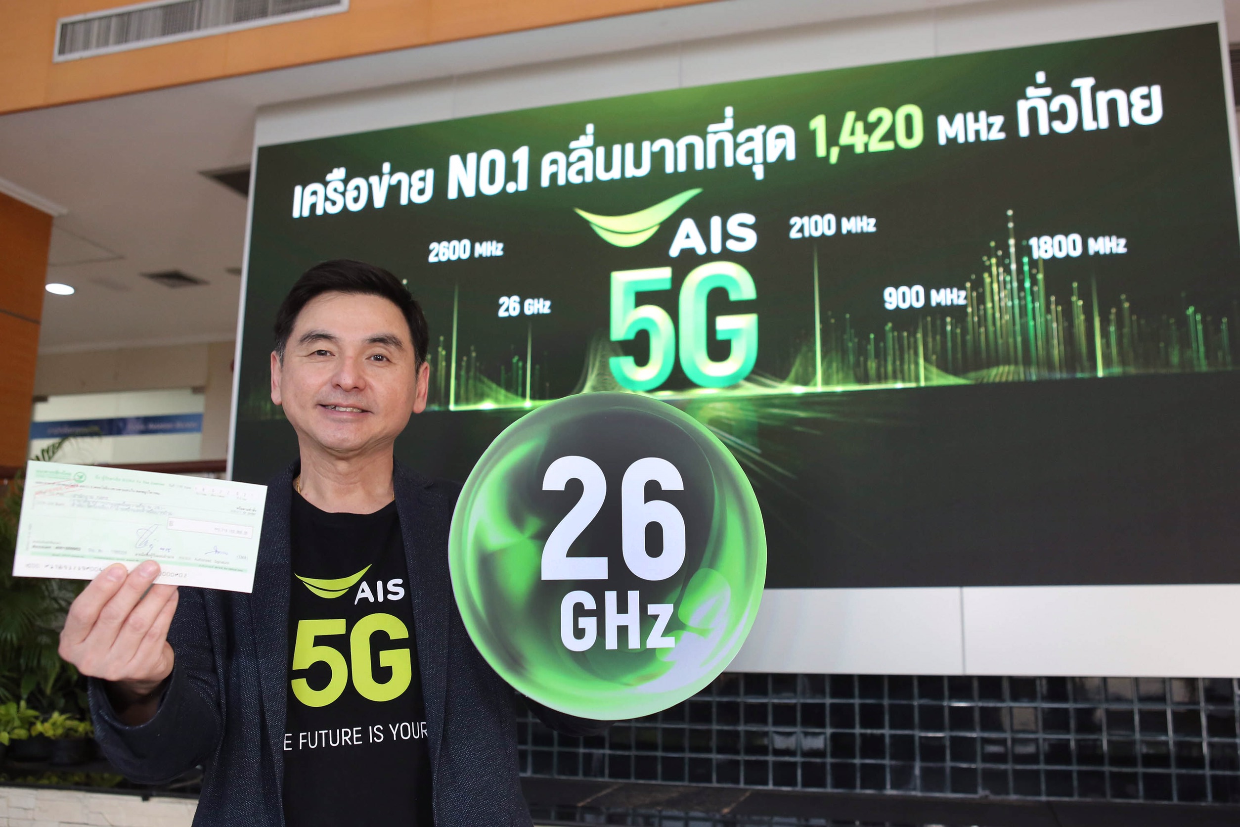 จากการชำระค่าคลื่นความถี่ย่าน 26 GHz พร้อมรับใบอนุญาตในวันนี้ ส่งผลให้ เอไอเอส ถือครองคลื่นความถี่ 5G ครบทั้ง 3 ย่าน ได้แก่ คลื่น 700 MHz, 2600 MHz และ 26 GHz หากรวมเฉพาะคลื่นความถี่ที่จะนำมาให้บริการ 5G ทั้งหมดอยู่ที่ 1330* MHz และเมื่อรวมกับคลื่นความถี่เดิมที่มีจำนวนมากที่สุดอยู่แล้ว ส่งผลให้
