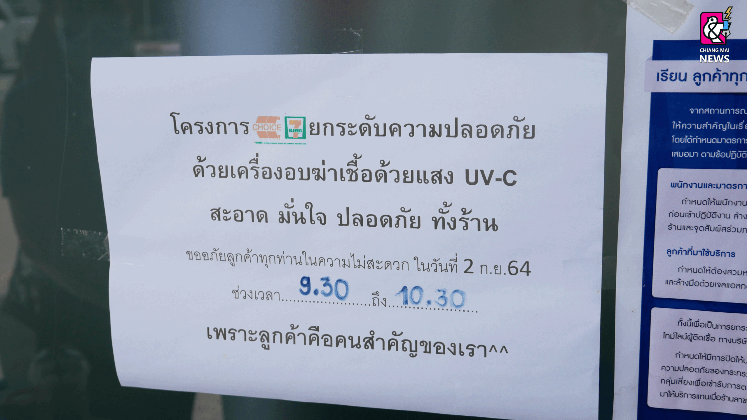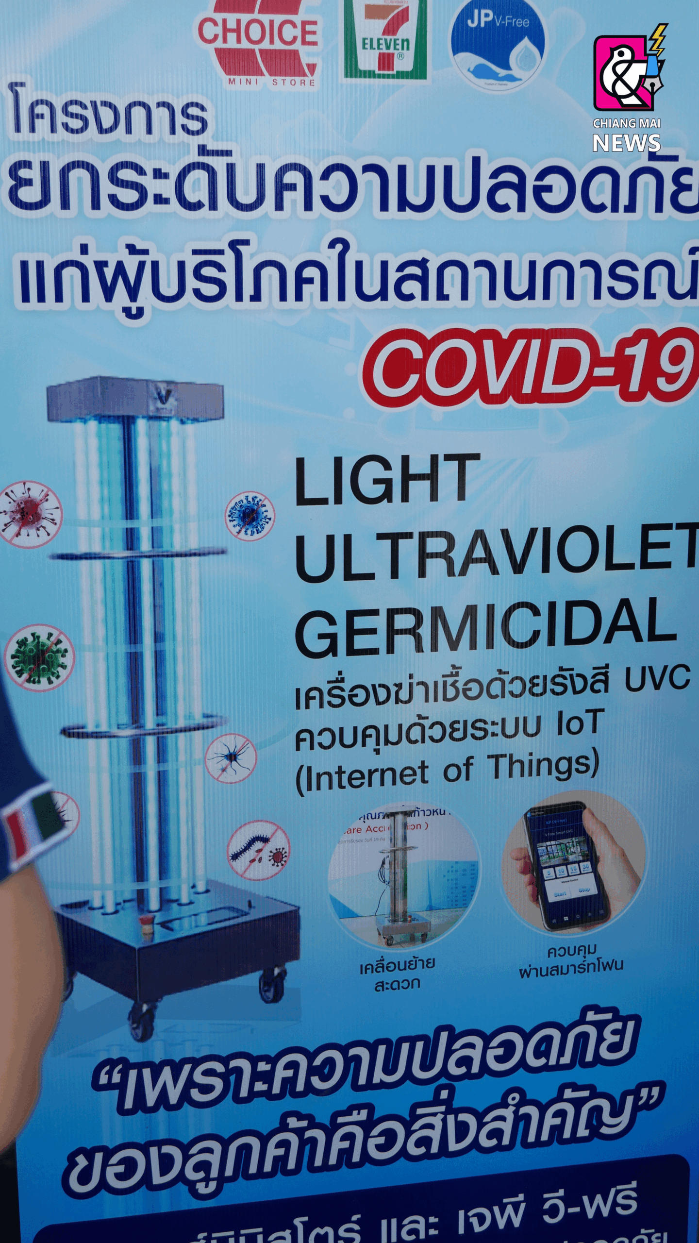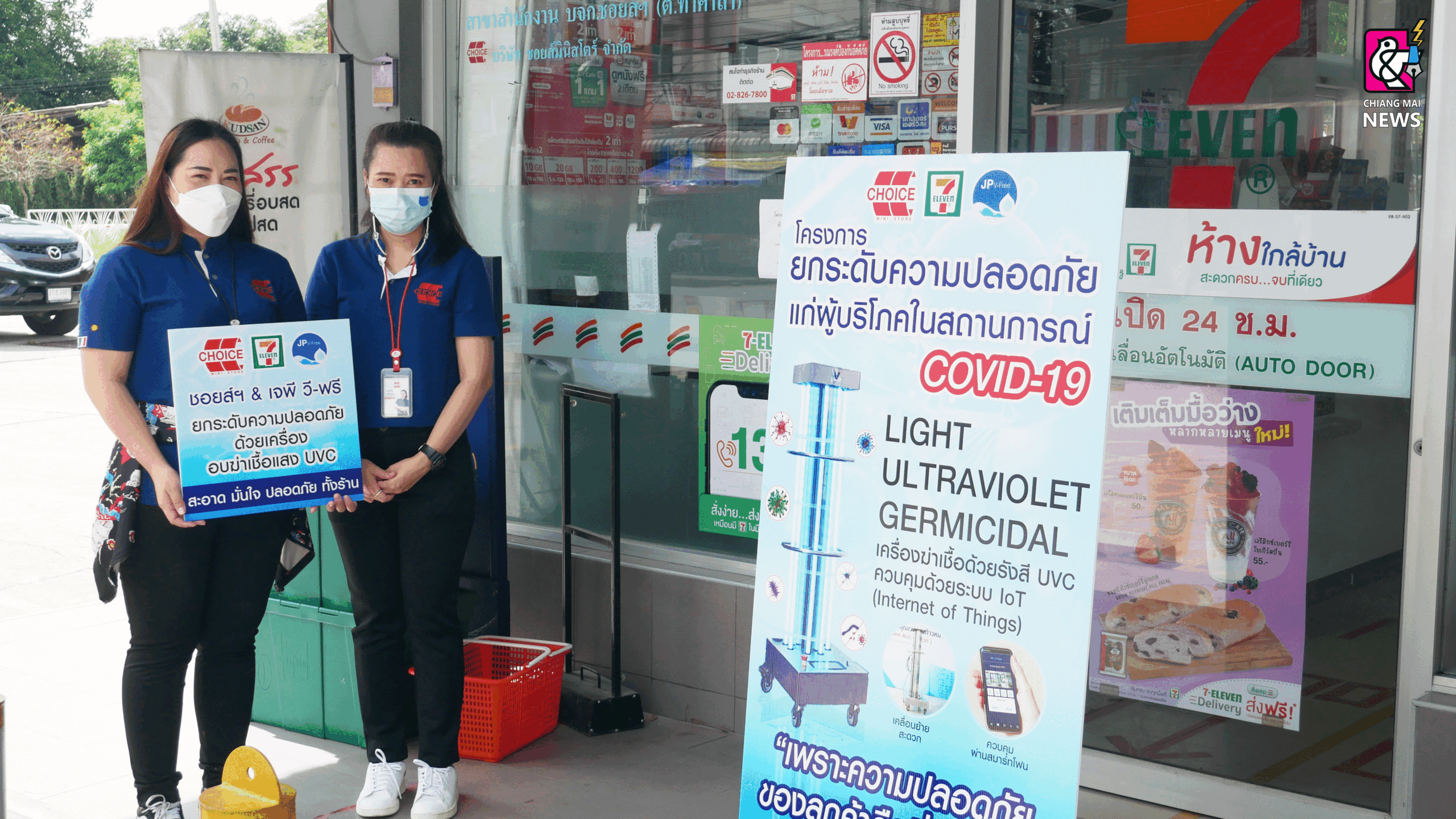 เพื่อสร้างความมั่นใจให้กับลูกค้าที่ใช้บริการ โดยได้ร่วมกับ บริษัท JP V-Free จำกัด ได้นำ เครื่องอบฆ่าเชื้อด้วยรังสียูวีชี (UV-C DISINFECTION) ยี่ห้อ V Free มาทำความสะอาดให้ทุกสาขาของร้านเซเว่นอีเลฟเว่นในเขตจังหวัด เชียงใหม่ ลำพูน และแม่ฮ่องสอน โดยเริ่มต้นที่ 5 สาขานำร่องคือ