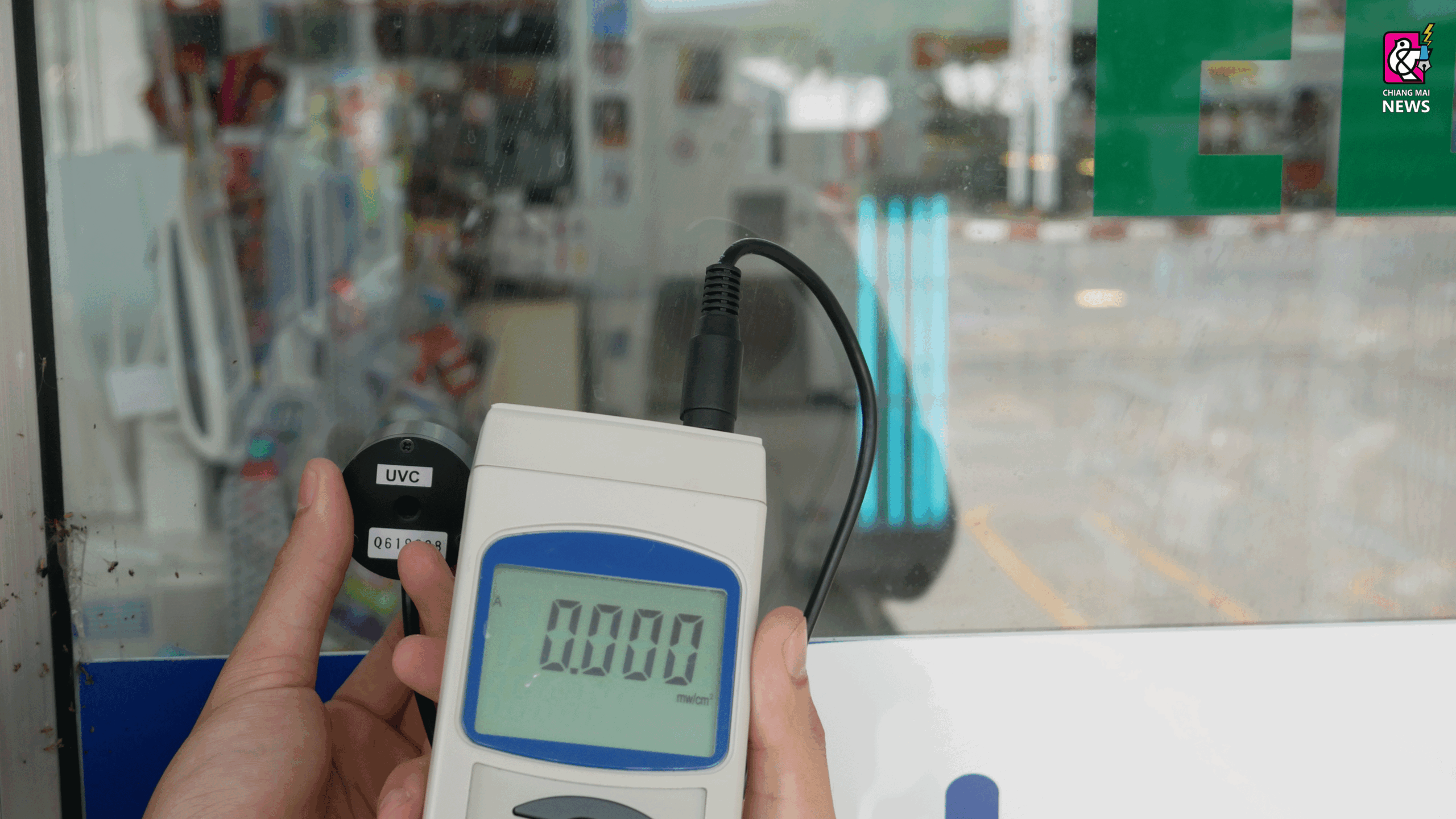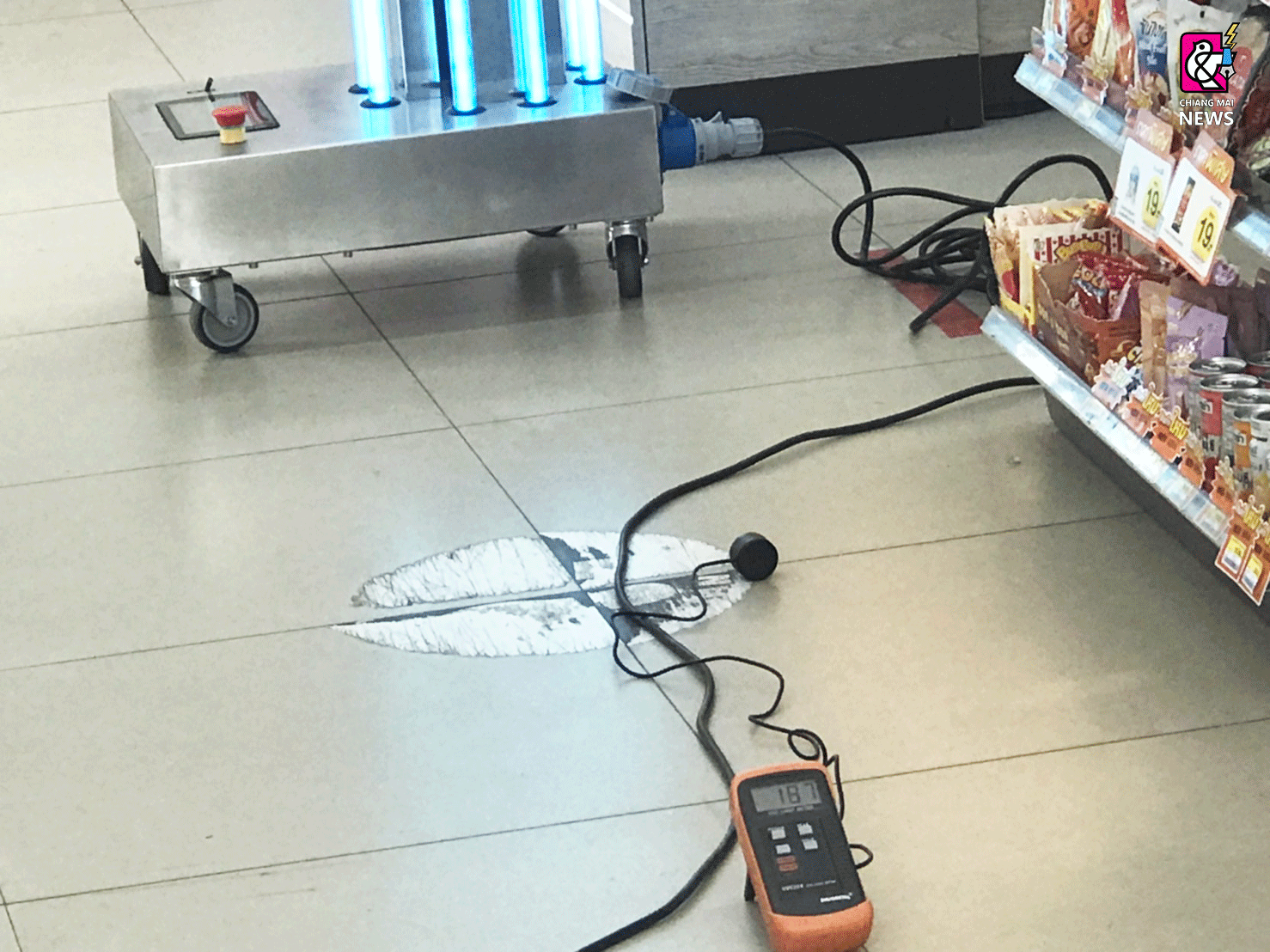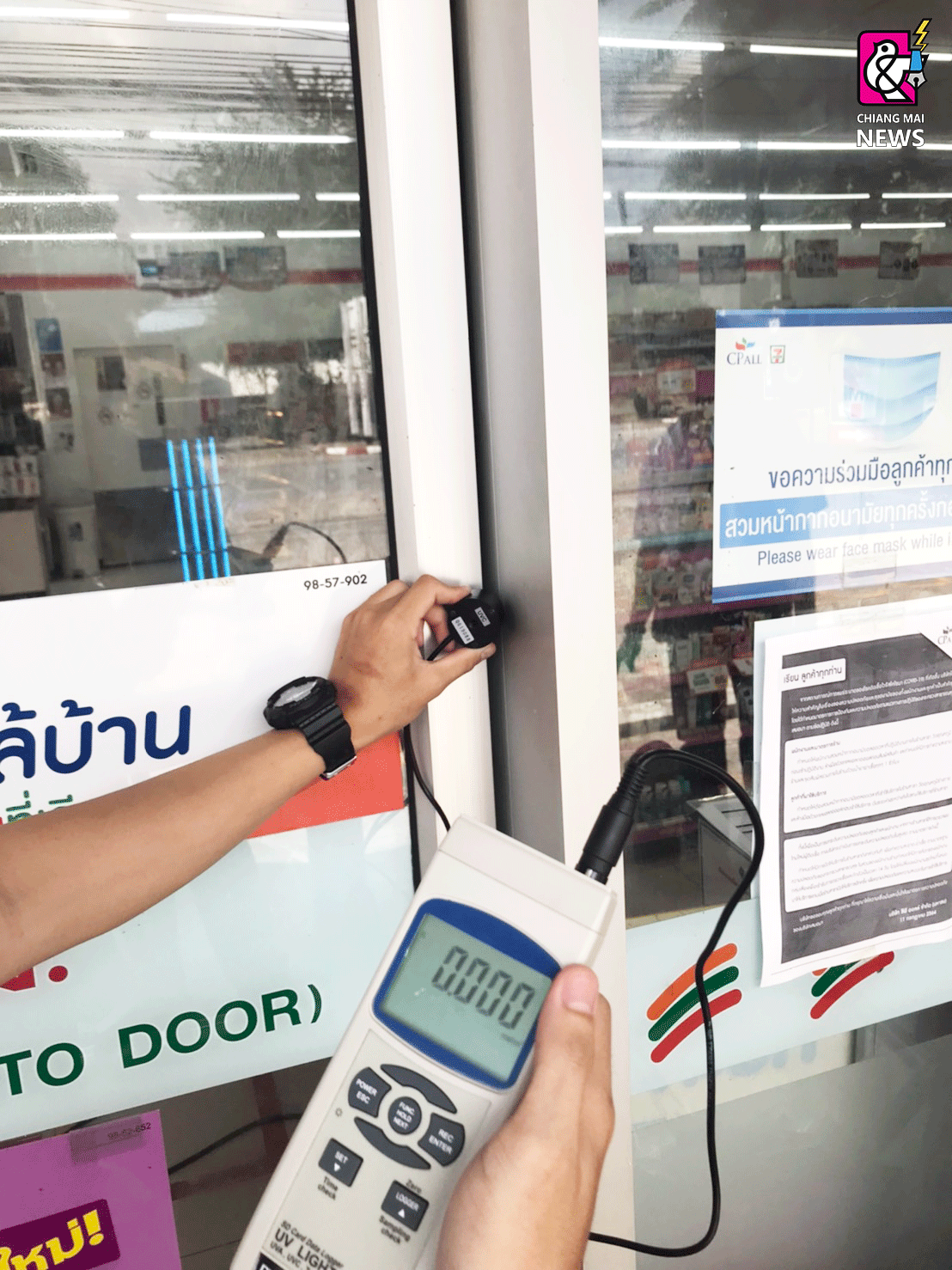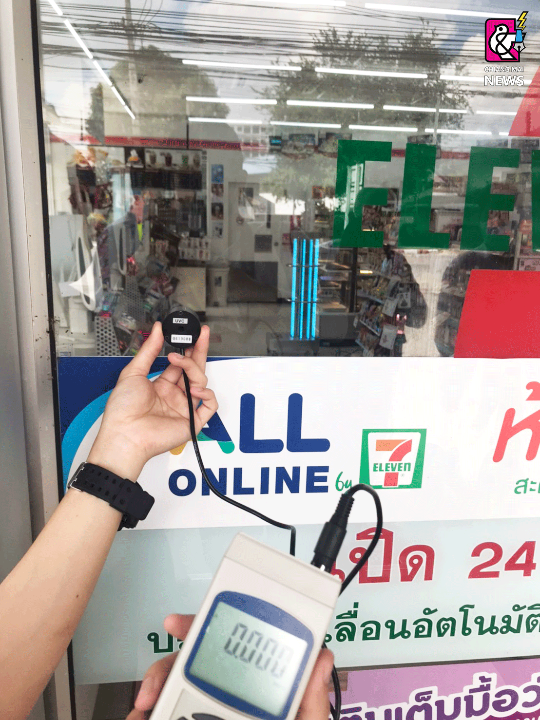 จากการทำงานเครื่องอบฆ่าเชื้อด้วยรังสียูวีชี (UV-C DISINFECTION) ในร้าน ค่าสูงเกือบ 190 แต่ด้านนอกมีความปลอดภัยอย่างมาก ค่าที่วัดได้ด้านนอกร้าน เป็นศูนย์ 0 โดยไม่ทะลุผ่านกระจก ไม่ลอดผ่านช่องต่างๆ หรือกระจกร้านสะดวกซื้อ