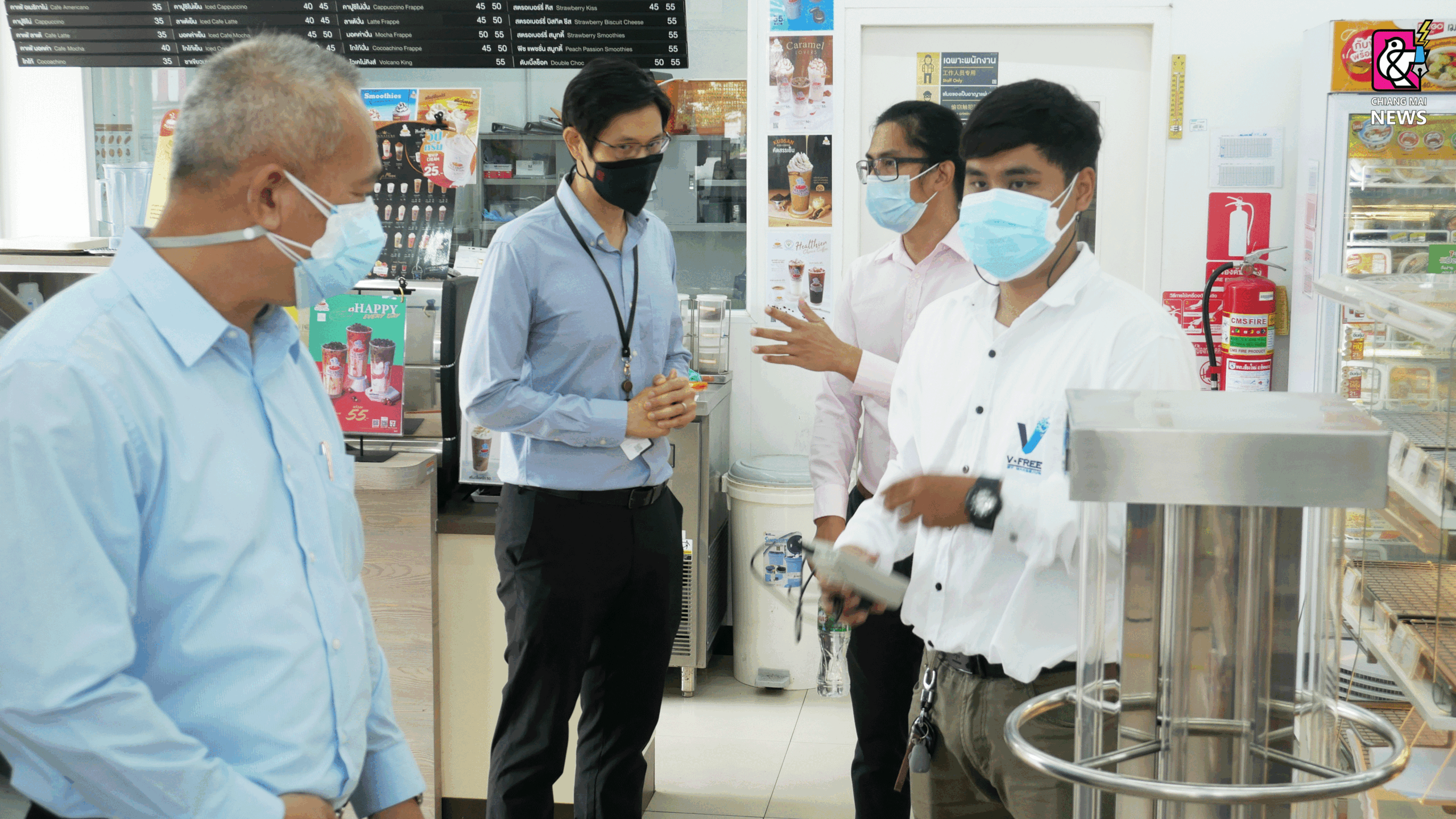 ผู้ช่วยกรรมการผู้จัดการ สายงานปฏิบัติการ บริษัท ชอยส์ มินิสโตร์ จำกัด ได้ร่วมสังเกตและดูการทำงานของ เครื่องอบฆ่าเชื้อด้วยรังสียูวีชี (UV-C DISINFECTION) ยี่ห้อ V Free อย่างใกล้ชิดเพื่อตรวจสอบการทำงานของเครื่อง ว่ามีความปลอดภัย และดูว่าการทำงานได้คุณภาพมาตรฐานตามที่หน่วยงานรัฐ รับรอง