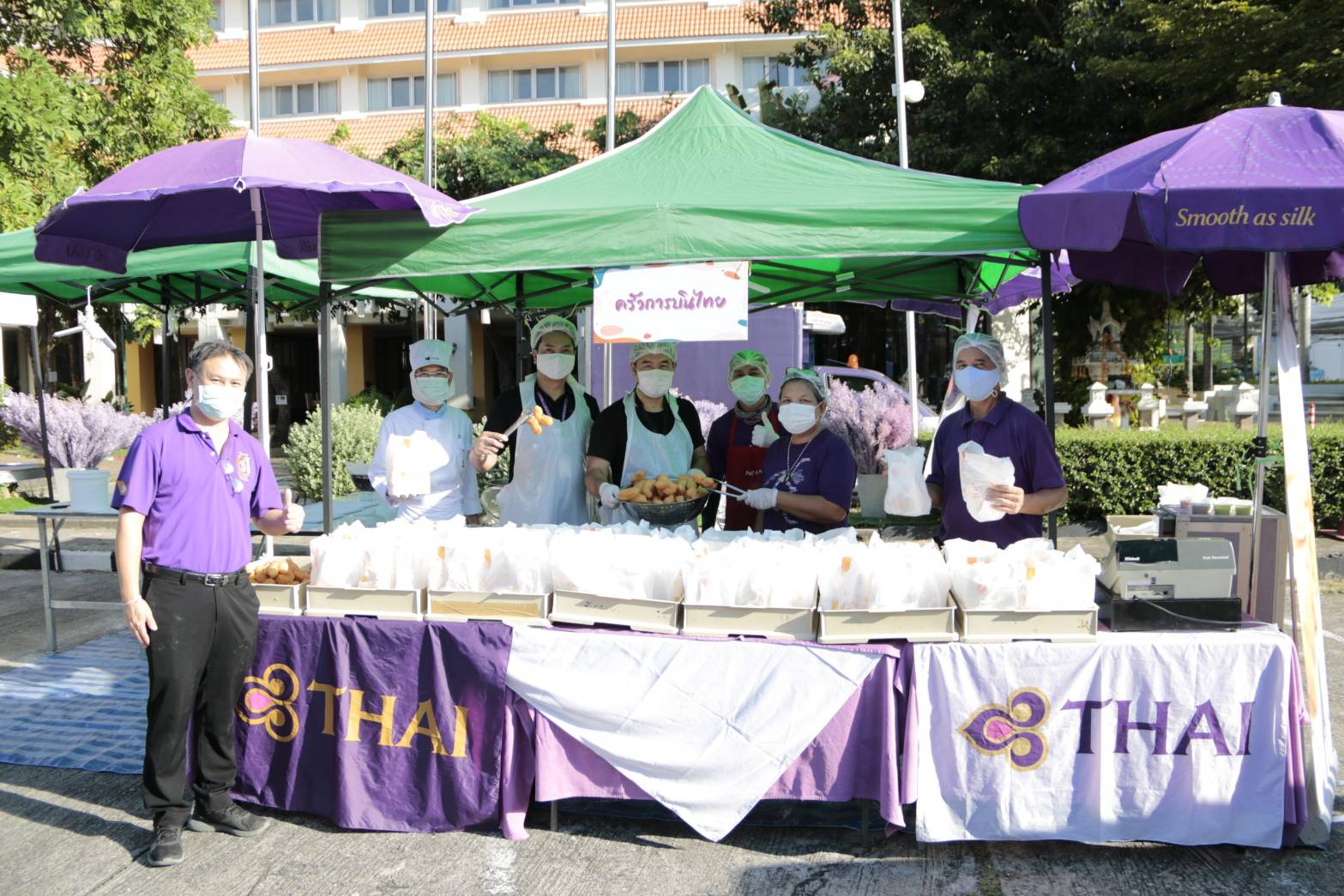 Breakfast Drive Thru อร่อยทุกเช้า ได้จับคู่อาหารเช้าชื่อดัง อย่าง “ปาท่องโก๋การบินไทย” ที่ขึ้นชื่อเรื่องความอร่อย มาขายคู่กับ “โจ๊กจักรพรรดิ” ซึ่งเป็นสูตรลับจากห้องอาหารซีทรัส เชฟจากโรงแรมเมอร์เคียว เชียงใหม่ ในราคา 888.- พร้อมกับขายโจ๊กธรรมดา เริ่มต้นที่ ราคา 45.- มีทั้งหมู ไก่ กุ้ง โดยเมนูโจ๊กจักรพรรดิ ต้องสั่งจองล่วงหน้า 1 วัน อีกทั้งเพื่อเตรียมความพร้อมเปิดให้บริการโรงแรมเมอร์เคียวอีกครั้ง ในวันที่ 17 ต.ค. 64 นี้