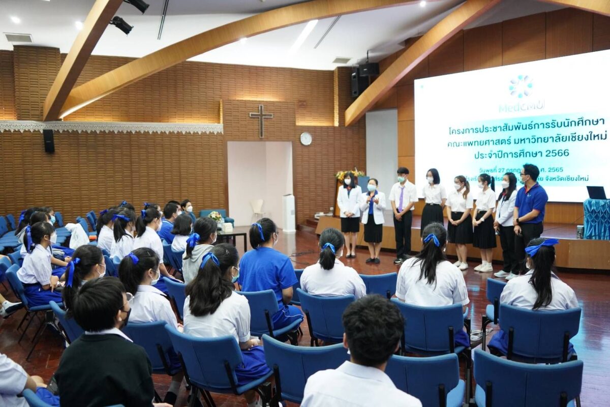 ศ.(เชี่ยวชาญพิเศษ)นพ.บรรณกิจ โลจนาภิวัฒน์ คณบดีคณะแพทยศาสตร์ มช. เป็นประธานในพิธีเปิด โครงการประชาสัมพันธ์การรับนักศึกษาเพื่อเข้าศึกษาระดับปริญญาตรี หลักสูตรแพทยศาสตรบัณฑิต ประจำปีการศึกษา 2566 ที่โรงเรียนปรินส์รอยแยลส์วิทยาลัย โดยมี ดร.เกรียง ฐิติจำเริญพร ผู้จัดการ-ผู้อำนวยการ โรงเรียนปรินส์รอยแยลส์วิทยาลัย ให้การต้อนรับ คณะผู้บริหารด้านการศึกษา คณะแพทยศาสตร์ มช. นำโดยรศ.พญ.ประภาพร สู่ประเสริฐ รองคณบดี พร้อมผู้ช่วยคณบดี ร่วมเป็นวิทยากรแนะนำหลักสูตรการเรียนการสอนในคณะแพทยศาสตร์ มช. เกณฑ์และคุณสมบัติการรับเข้าศึกษา “โครงการผลิตแพทย์นักวิทยาการข้อมูล” และหลักสูตรอื่น ๆ ที่เกี่ยวข้องกับโครงการฯ รวมทั้ง ตอบคำถามต่าง ๆ เมื่อวันที่ 27 กรกฎาคม 2565 ณ โรงเรียนปรินส์รอยแยลส์วิทยาลัย อ. เมืองเชียงใหม่ จ.เชียงใหม่