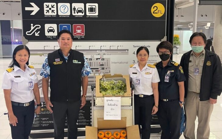 ทั้งนี้ จะประสานกับทางการท่าอากาศยานให้ประชาสัมพันธ์ เรื่องนี้ให้เข้มข้นมากขึ้นเพื่อให้ประชาชนรับทราบทั่วกัน ล่าสุดจากการตรวจเยี่ยมการดำเนินงานของด่านตรวจพืชท่าอากาศยานสุวรรณภูมิ จังหวัดสมุทรปราการ การนำเข้าสินค้าผลไม้สดผ่านช่องทางอาคารผู้โดยสาร จากการปฏิบัติงานบูรณาการร่วมกับศุลกากรที่ผ่านมา พบว่ามีผู้โดยสาร ที่เดินทางไปท่องเที่ยวต่างประเทศ ผ่านทางบริษัทนำเที่ยว ได้นำสินค้าผลไม้สด (พลับ องุ่น) เข้าประเทศเป็นจำนวนมาก โดยไม่มีใบรับรองสุขอนามัยพืชจากประเทศต้นทางและไม่มีใบอนุญาตนำเข้าสิ่งต้องห้าม ซึ่งเป็นการกระทำผิดกฎหมาย