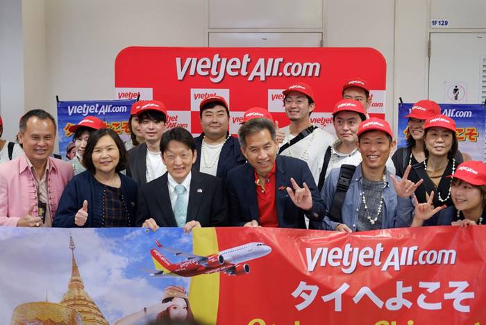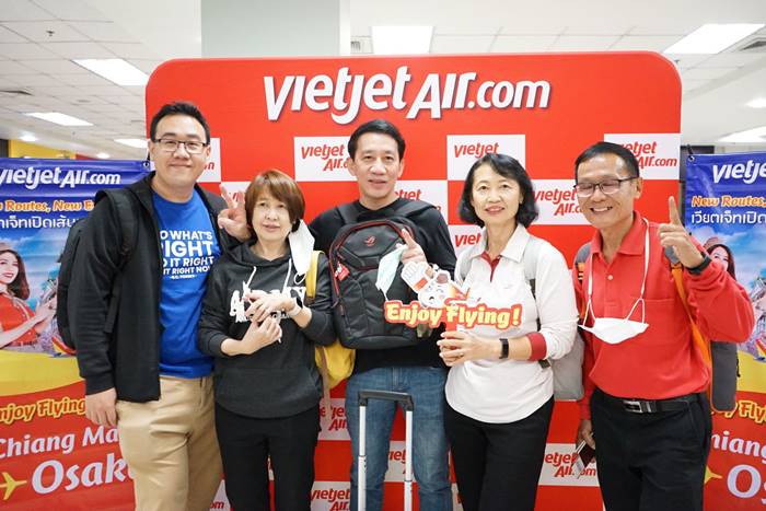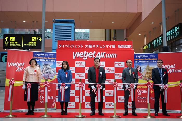 ผู้โดยสารบนเที่ยวบินปฐมฤกษ์จากเชียงใหม่ สู่ โอซาก้า เที่ยวบินที่ VZ822 ได้รับการต้อนรับด้วยของที่ระลึกจากสายการบินฯ เที่ยวบินดังกล่าวเดินทางถึงท่าอากาศยานนานาชาติคันไซโดยสวัสดิภาพ พร้อมด้วยพิธีต้อนรับอย่างอบอุ่น ณ ท่าอากาศยานนานาชาติคันไซ โดยมี นางเมริกา สีวะรา รักษาราชการแทนกงสุลใหญ่ ณ นครโอซาก้า นางสาวธนวดี สุขสกุลวัฒนา ผู้อำนวยการ การท่องเที่ยวแห่งประเทศไทย สำนักงานโอซาก้า นาย Stephane Geffory รองประธานบริหารองค์กร ท่าอากาศยานคันไซ นาย Takafumi Nakada ผู้บริหารสนามบินนานาชาติคันไซ และนาย เลือง เชือง อัน รองประธานกรรมการบริหาร สายการบินไทยเวียตเจ็ทร่วมพิธีดังกล่าว