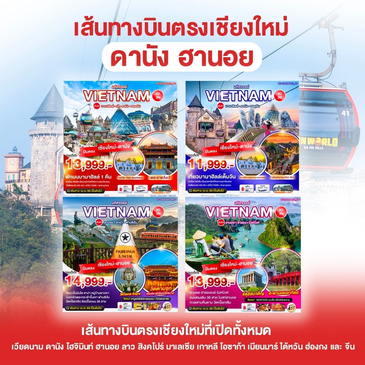 Bestinternational สาขา เชียงใหม่ บินตรงจากเชียงใหม่ – ดานัง ฮานอย และเส้นทางอื่นๆอีกทั่วโลก ทัวร์ต่างประเทศ เริ่มต้น 11,999 บาท