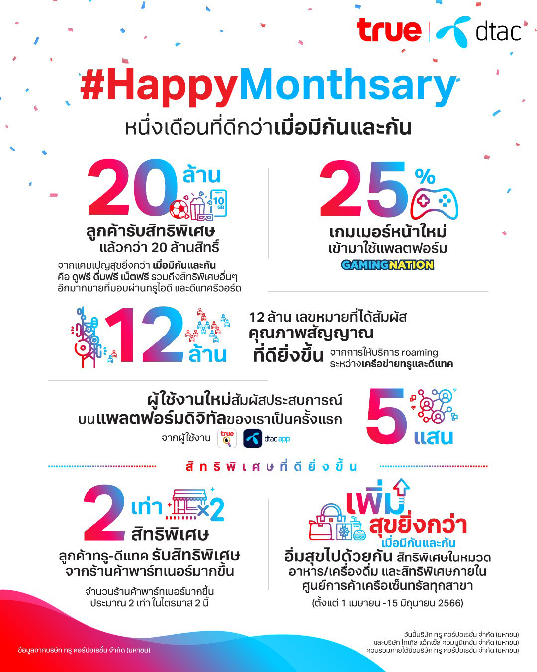 - ลูกค้ารับสิทธิพิเศษทั้งทรูและดีแทครวมมากกว่า 20 ล้านรายการ
