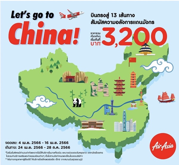 แอร์เอเชีย เดินหน้าบุกตลาดต่างประเทศต่อเนื่อง หวังดึงนักท่องเที่ยวเข้าไทย เริ่มไตรมาส 2 ด้วยการขยายเส้นทางบินใหม่สู่ประเทศจีนเพิ่มอีก 4 เส้นทาง ได้แก่ ดอนเมือง-เฉิงตู (เทียนฝู่) (7 เที่ยวบินต่อสัปดาห์) พร้อมบินตรงจากฮับเชียงใหม่ สู่ ปักกิ่ง (7 เที่ยวบินต่อสัปดาห์) หางโจว (4 เที่ยวบินต่อสัปดาห์) ฉางซา (5 เที่ยวบินต่อสัปดาห์) โดยจะทยอยให้บริการเที่ยวบินแรก ตั้งแต่วันที่ 30 เมษายน 2566 เป็นต้นไป