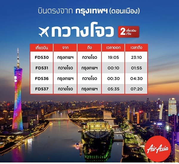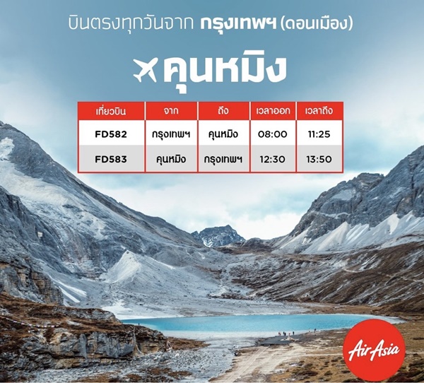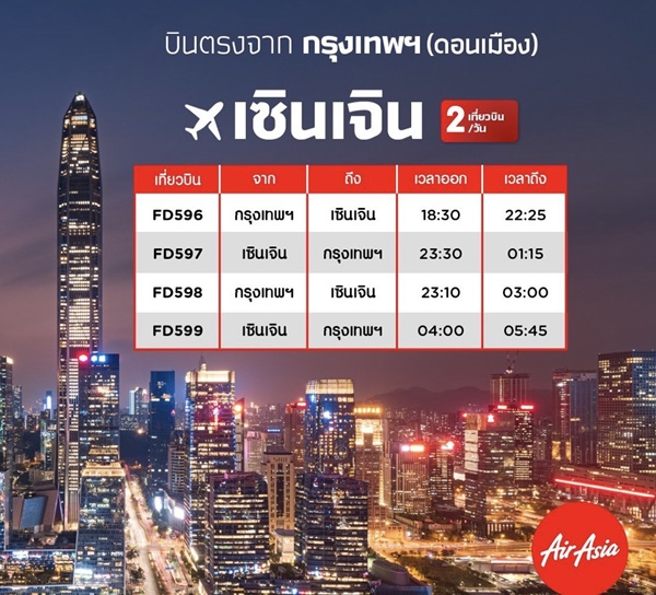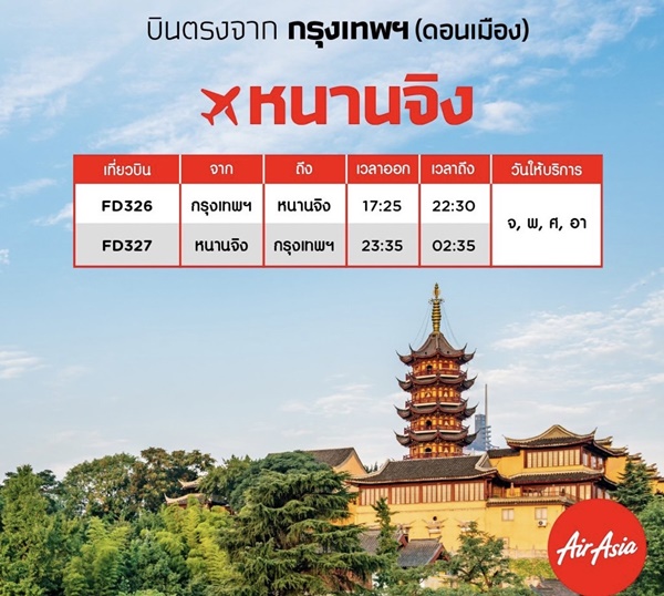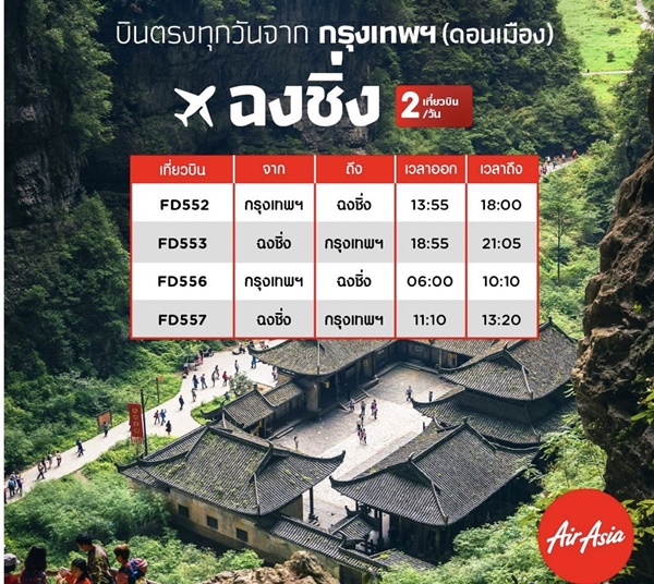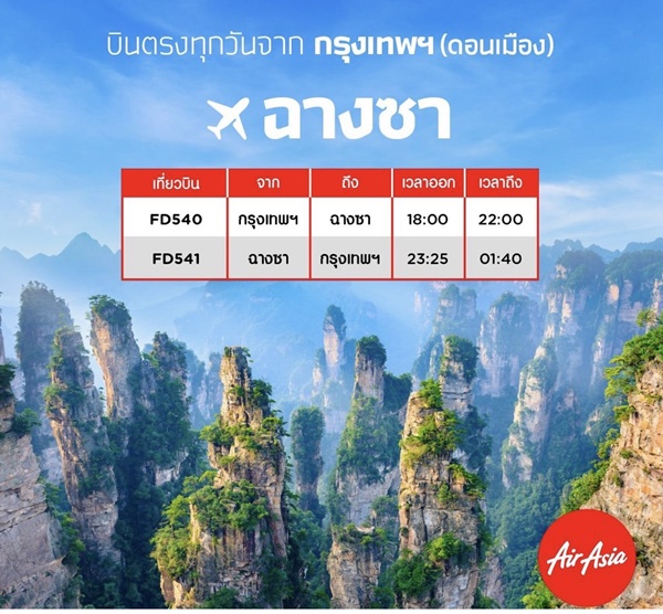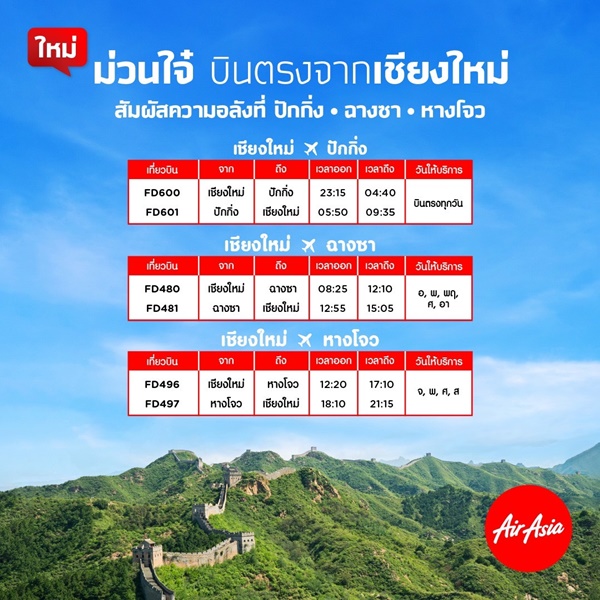 แอร์เอเชีย ขยายเส้นทางต่างประเทศต่อเนื่อง เปิดจีนเพิ่ม 4 เส้นทาง พร้อมบินตรงจากเชียงใหม่
