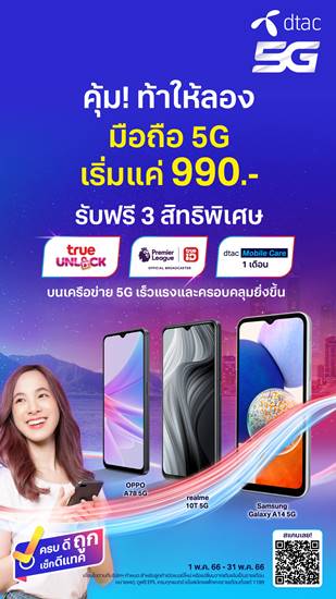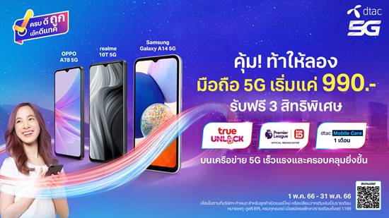 ถึงเวลาต้องเปลี่ยนแล้ว!! มองหาสมาร์ทโฟน 5G เครื่องใหม่ คุ้ม! ท้าให้ลองที่ดีแทค