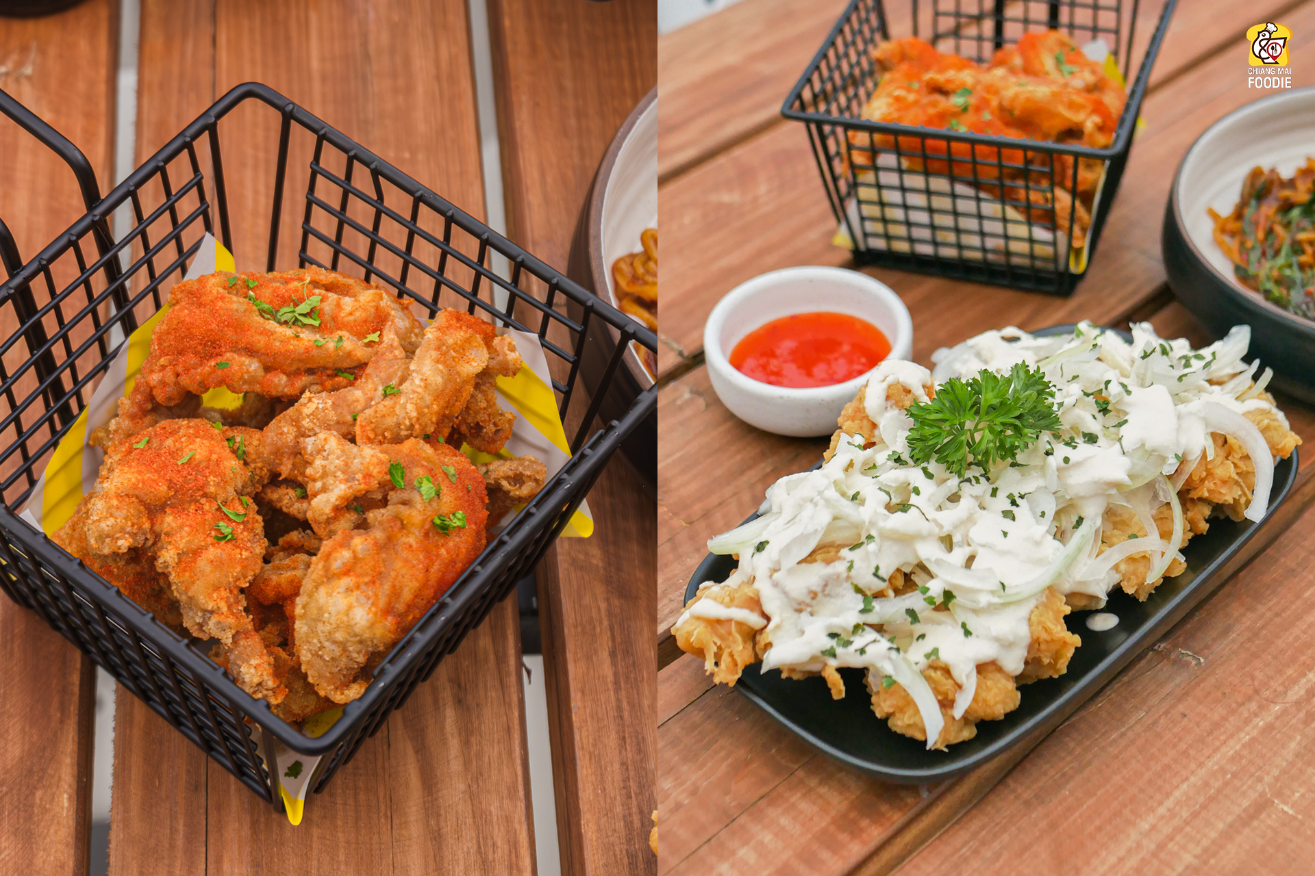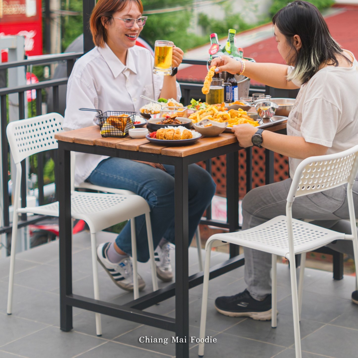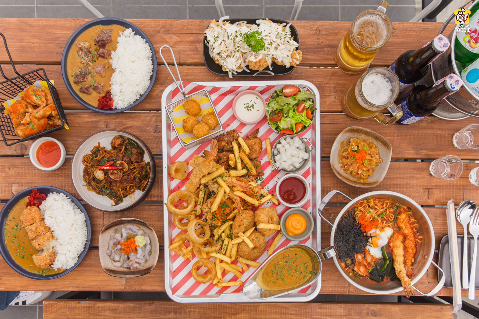 อิ่มท้องแล้วจะนั่งดื่มต่อ ก็ได้บรรยากาศนะ ชอบตรงชั้น 2 ของร้านคือเป็นระเบียงรับอากาศฉ่ำๆ เลย เดือนนี้มี 2 แถม 1 ซะด้วยย ช่างภาพของเจ่เจ้ก็ว้าวุ่นเลยทีนี้ สั่งเครื่องดื่มมาปั๊บ ตามด้วย ชุดทอดแบบเซทใหญ่มาเลยจย้าาา คือจะสั่งขนาดนี้ ไม่ต้องสั่งข้าวมาก็ได้…แต่น้องๆ บอกราตรีนี้อีกยาวไกล ลุยๆ เลยดีกว่า บอกเลยว่าเซทนี้มีซอสให้จิ้มให้จ้วงหลากหลายมาก ที่เด็ดคือซอสแกงกะหรี่ ทีหยิบอะไรในถาดมาจิ้มก็ได้ เออ มันอร่อยเข้ากันเลยแฮะ