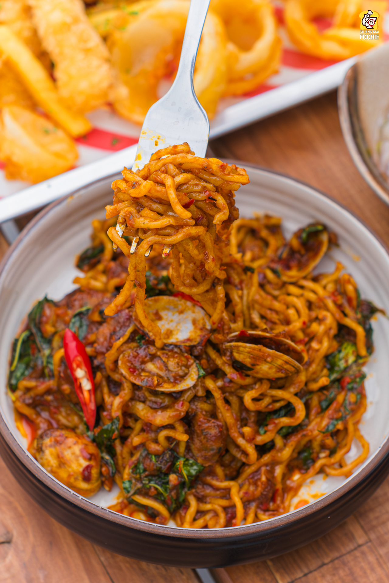 หรือสายเส้น แนะนำ ราเมนผัดหอยลาย คือตัวเครื่องคลุกเคล้ามาอย่างเด็ด อีกหนึ่งเมนูที่ไม่ควรพลาด คือรามยอนเผ็ดไข่ออนเซ็นกุ้งทอด+ไข่กุ้ง เสิร์ฟมาแบบน่าอีสสสสุดๆ
