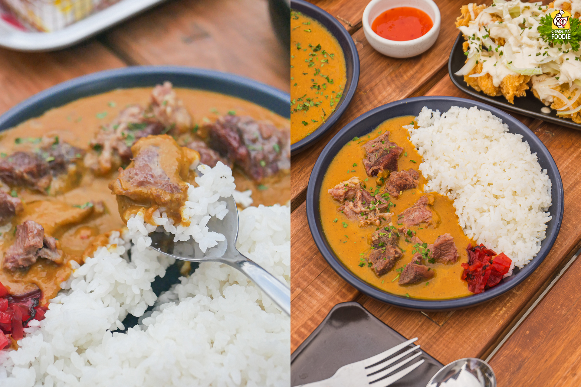 จะมุ่งมาหาของกินมื้อหนักให้อิ่มท้องมื้อกลางวันก็เหมาะเหม็ง หรือจะมานั่งชิลปล่อยใจปล่อยจอย ก็เริ่สน๊าาา ของกินที่ร้านเค้าเป็นในแบบกินง่าย รสมือดี อย่างข้าวแกงกะหรี่ของที่นี่คือเข้มข้นถูกปากแอดมินเจ่เจ้มากกก ไม่ว่าจะเป็นด้อมหมูชีสยืดดดดด หรือด้อมเนื้อตุ๋นเปื่อยๆ ก็เริ่สนะ ส่วนตัวแอดมินชอบทั้งคู่มีความเหมาะเข้ากันคนละแบบ