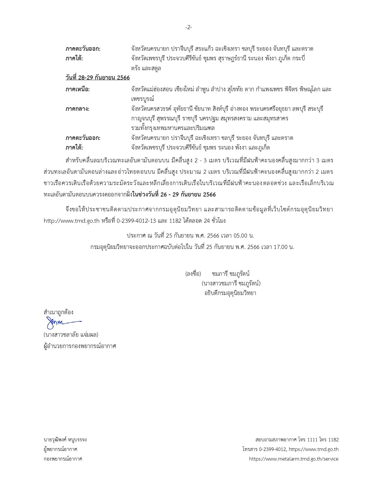 กรมอุตุนิยมวิทยาจะออกประกาศฉบับต่อไปใน วันที่ 25 กันยายน พ.ศ. 2566 เวลา 17.00 น.