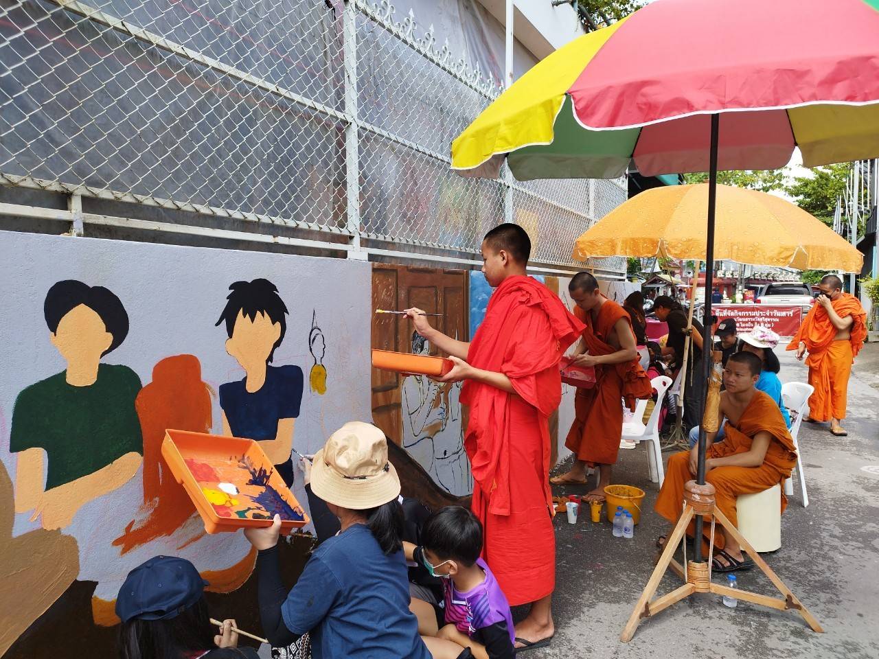ชื่นชมจิตอาสา ร่วมกันวาดกำแพงทางเข้าชุมชุน และวัดศรีศรีสุพรรณ จ.เชียงใหม่ เพื่อส่งเสริมการท่องเที่ยวให้เป็นจุดถ่ายภาพและเรียนรู้ตำนานของชุมชนต่อไป