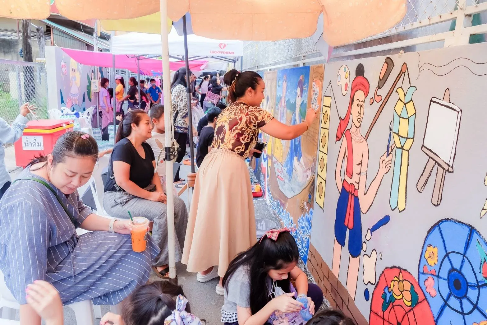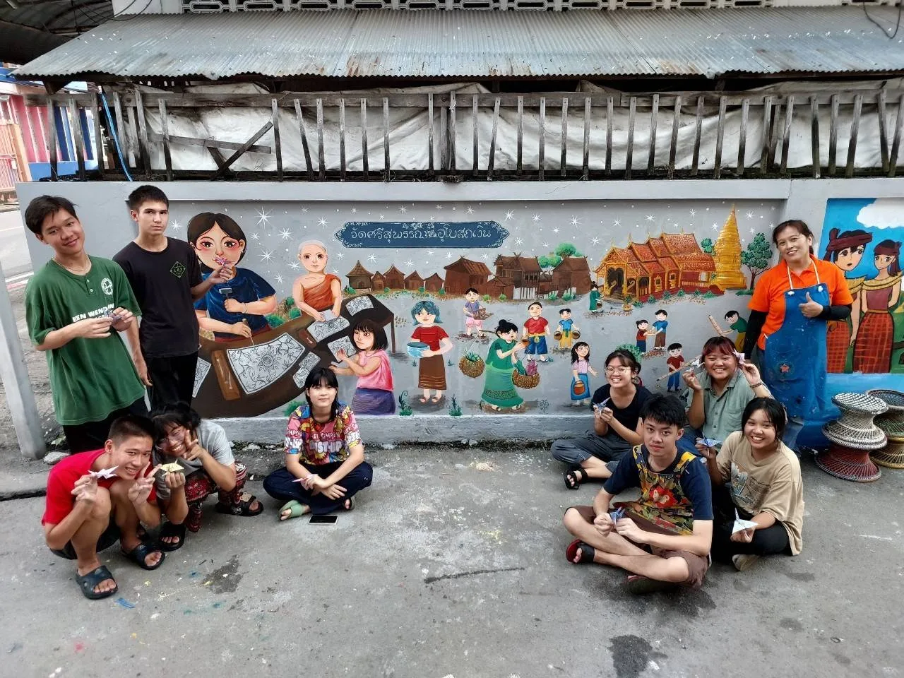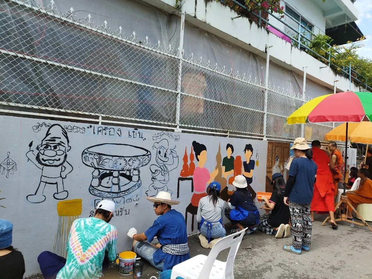 ชื่นชมจิตอาสา ร่วมกันวาดกำแพงทางเข้าชุมชุน และวัดศรีศรีสุพรรณ จ.เชียงใหม่ เพื่อส่งเสริมการท่องเที่ยวให้เป็นจุดถ่ายภาพและเรียนรู้ตำนานของชุมชนต่อไป