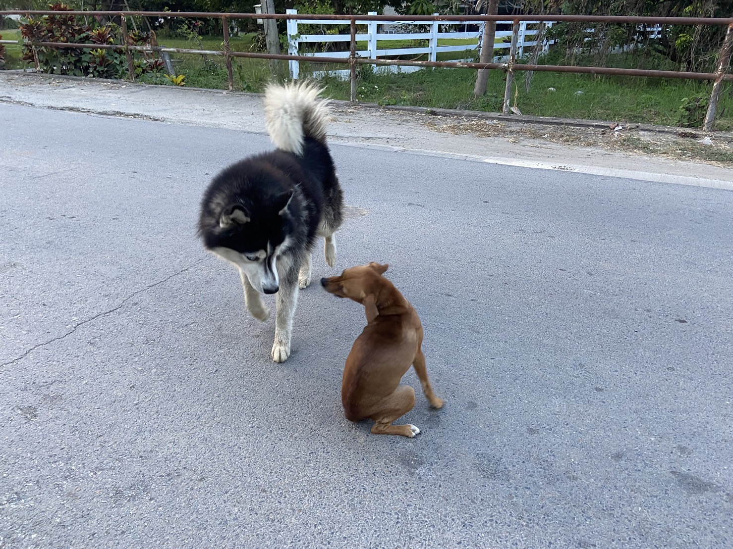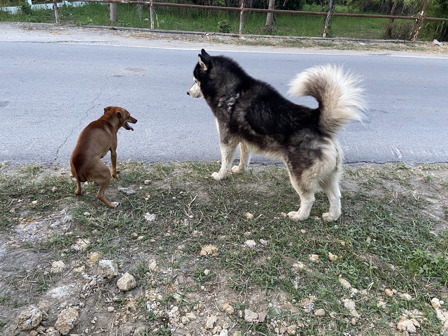 เป็นช่วงที่มีสุนัข 2 ตัว เห็นเข้าได้วิ่งออกมาจากบ้านเข้ารุมกัดน้องหมา จนน้องหมาตัวน้อยวิ่งเตลิดเข้าป่าหายไป