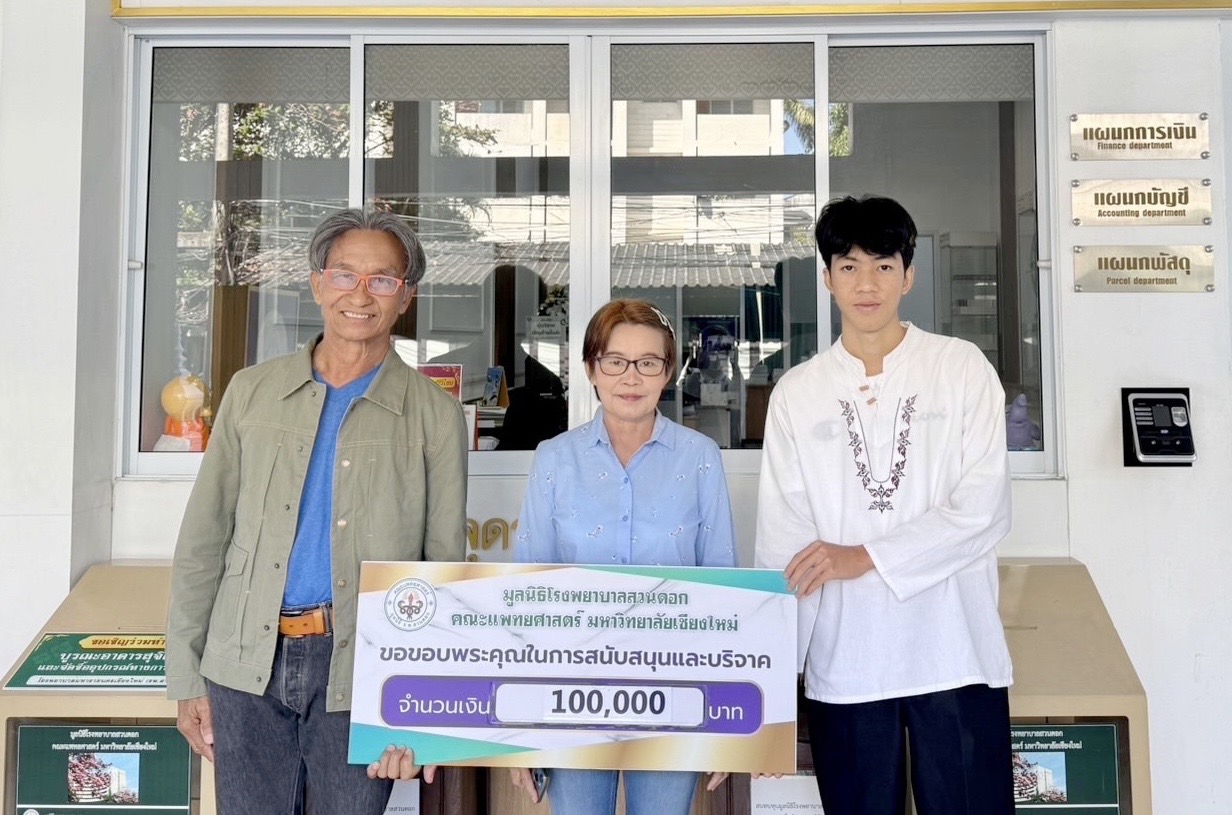 คุณณรงค์ บัวทองคำวิเศษ พร้อมครอบครัว บริจาคเงินจำนวน 100,000 บาท สมทบทุนมูลนิธิโรงพยาบาลสวนดอก เพื่อบ้านหลังใหม่อาจารย์ใหญ่ ครู ผู้ไร้ลมหายใจ เมื่อวันที่ 19 มกราคม 2567 ณ มูลนิธิโรงพยาบาลสวนดอก ชั้น 1 โรงพยาบาลสงฆ์แห่งโรงพยาบาลมหาราชนครเชียงใหม่ คณะแพทยศาสตร์ มช.