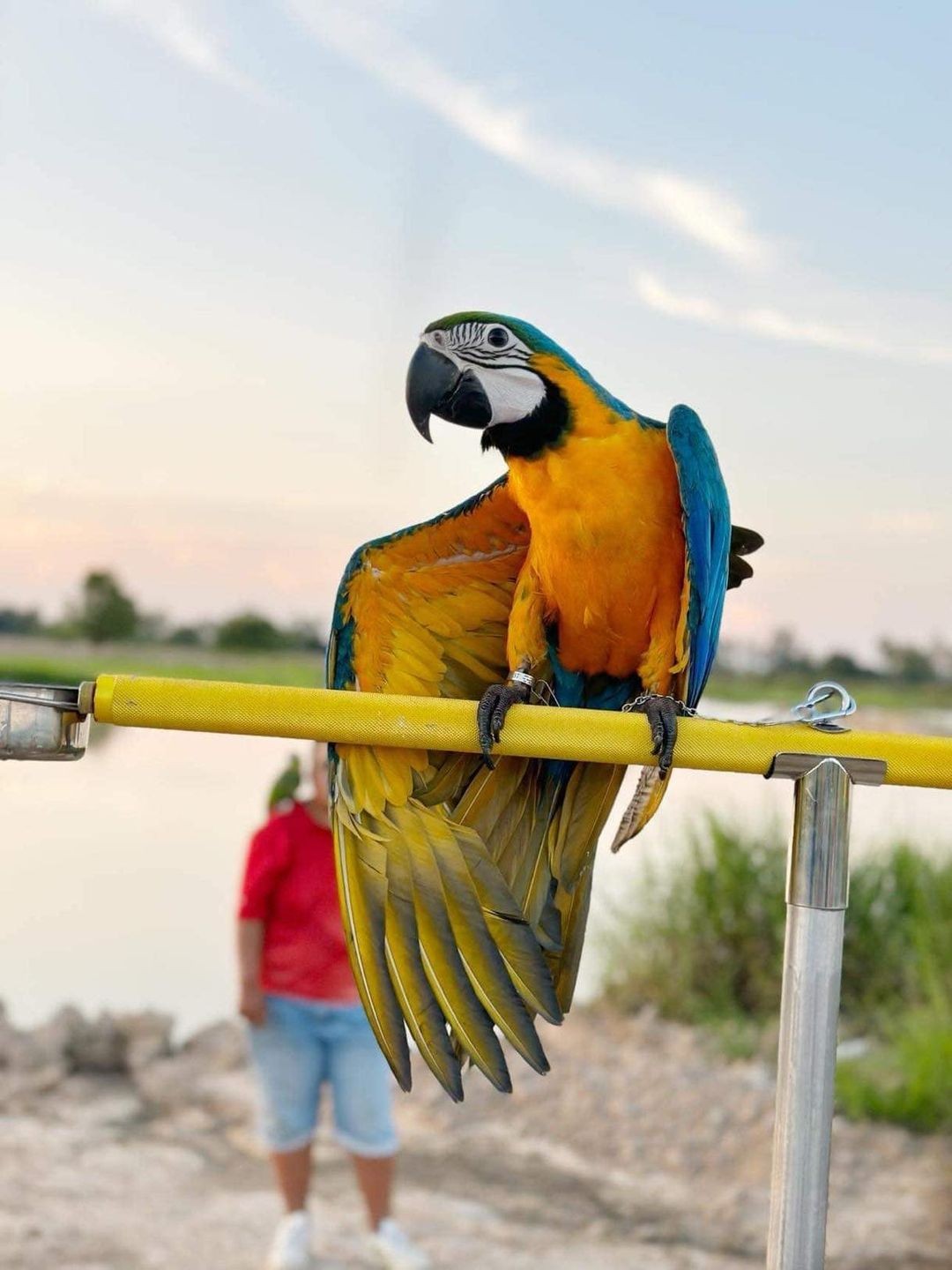 ตามหานกแก้วมาคอร์ สีฟ้าเหลือง น้องมีห่วงขา น้องผลัดหางเหลือไม่กี่เส้น